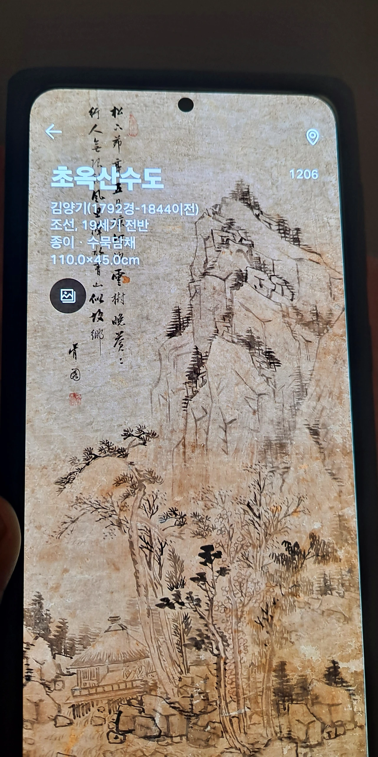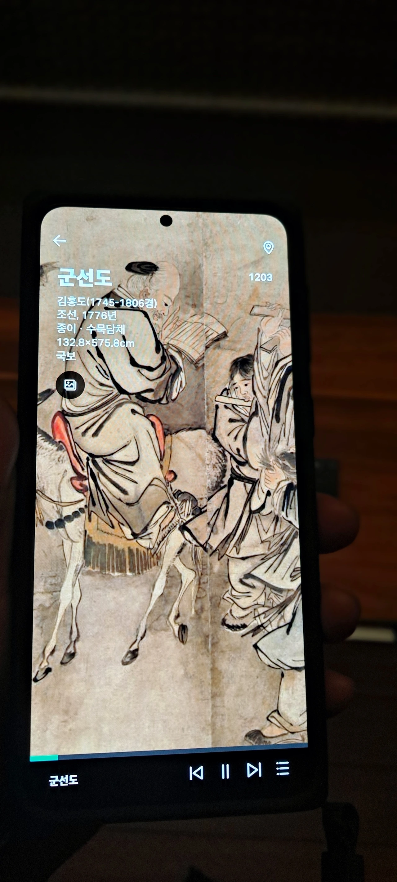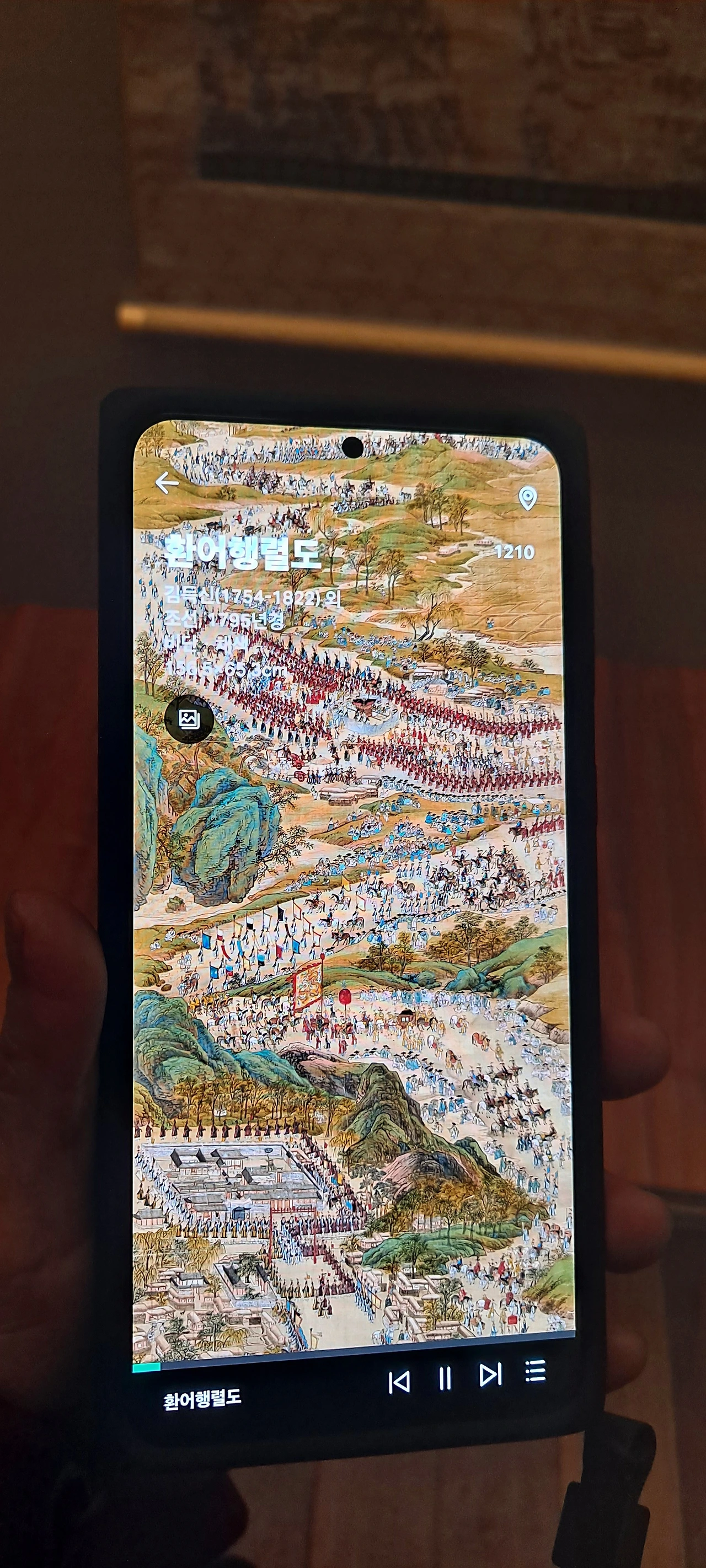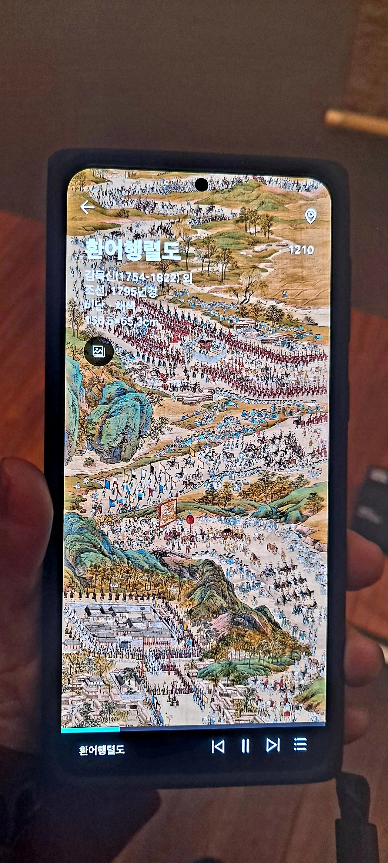 군선도의 위상을 지나 다시 멈춰선 작품앞... 이 뿜어내는 정선선생님의 작품...난 거구로 4층부터 보고 내려왔고 이곳의 사리함을 보며 한참을 거슬러 1980년 여고시절의 에피소드가 떠올랐다.