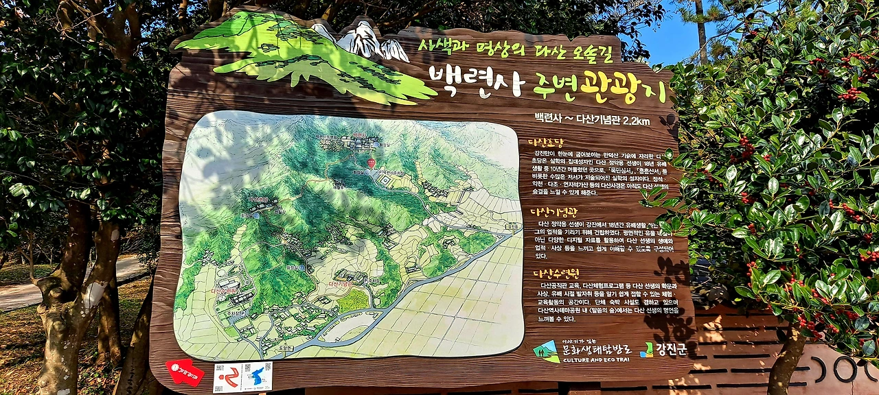 다행히도 심술궂은 눈 예보는 바람이 불어 준 탓에 이틀 먼저 내려 버렸고 , 우리는 맑아지는 일기 속에 여행을 떠날 수 있었다. 그 덕에 강진의 백련사 앞에 도착했을 때는 세상에 봄 날씨 같이 화창했던 기억이다.