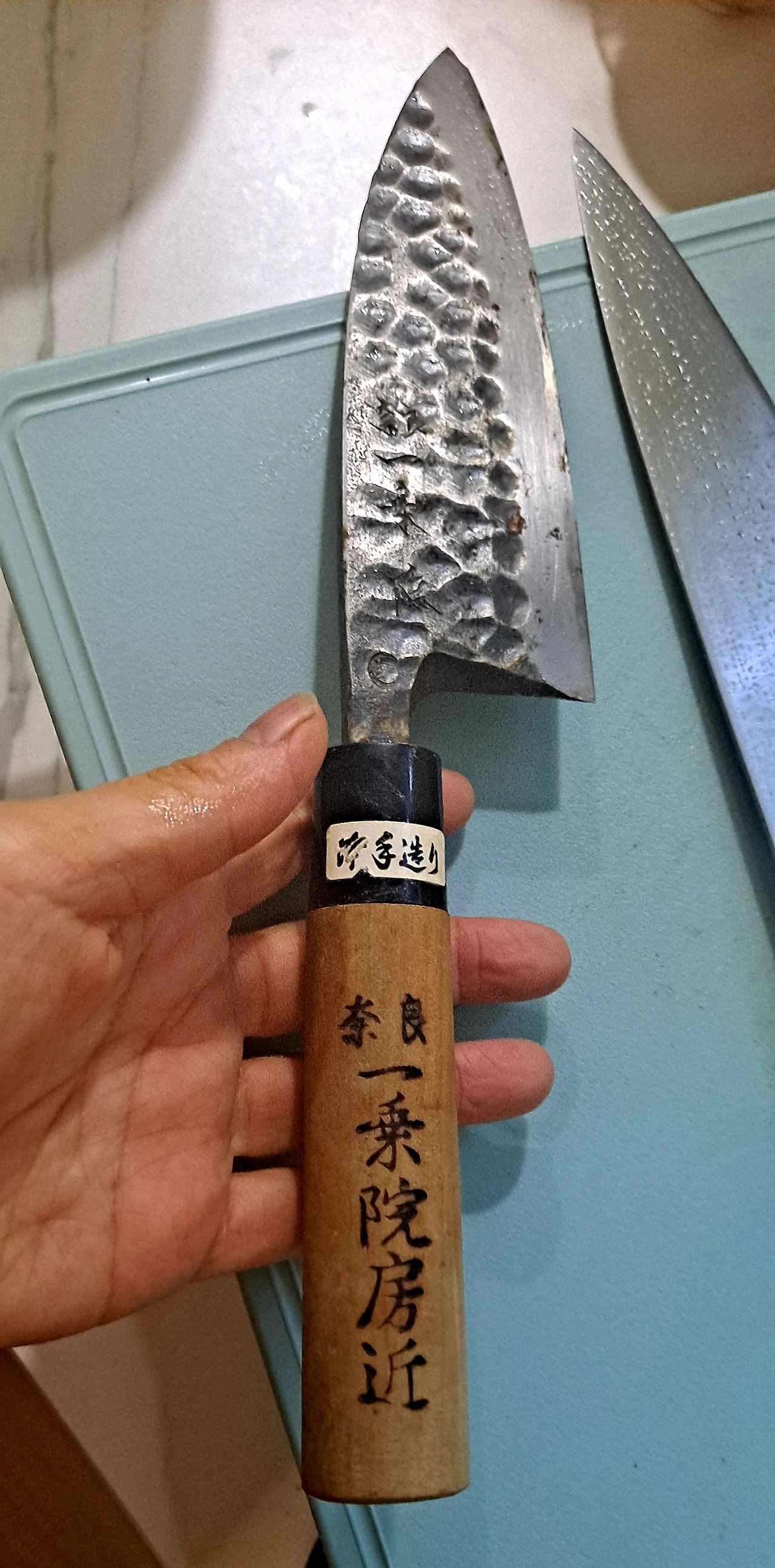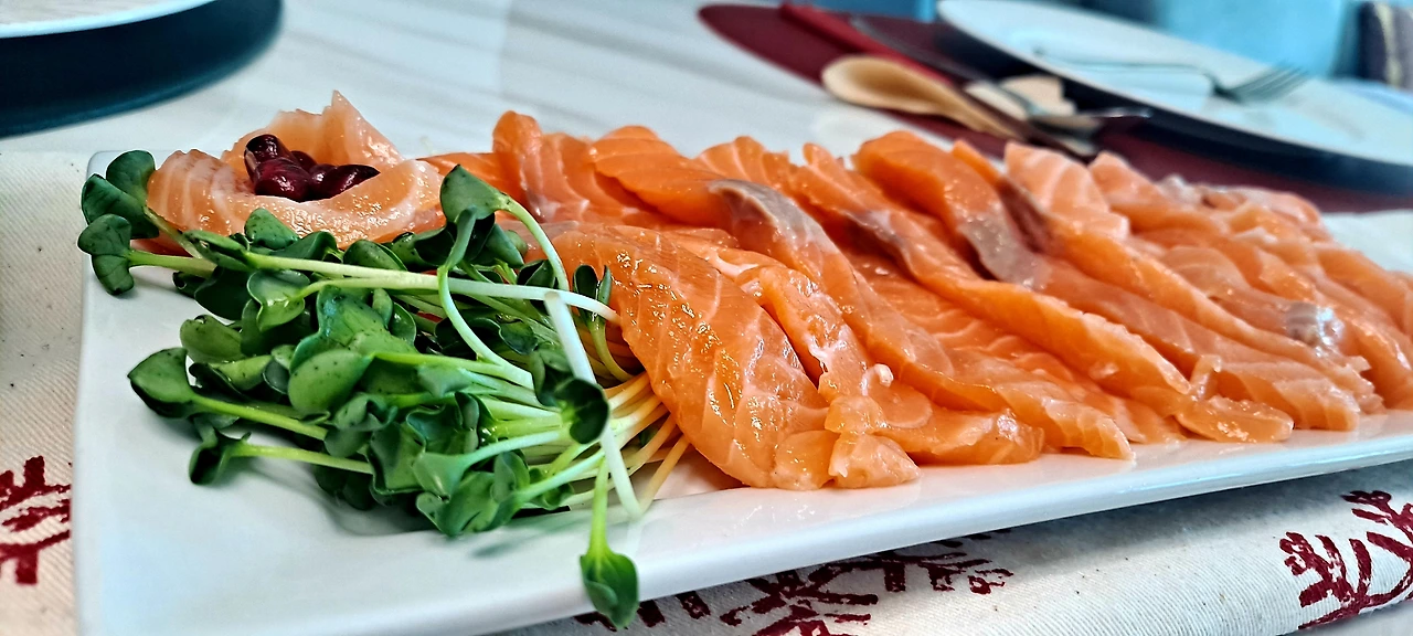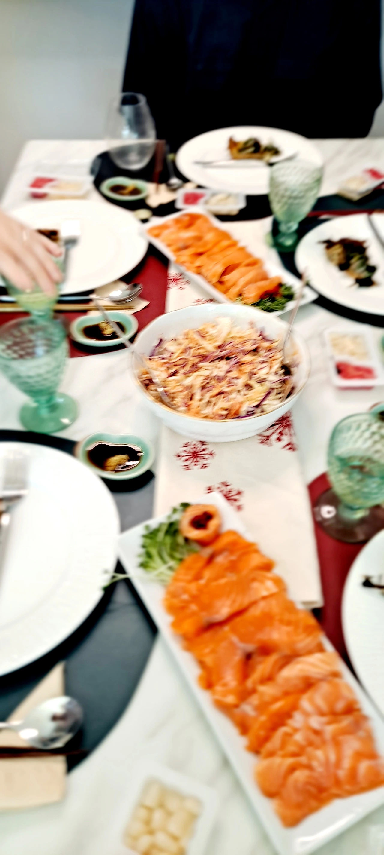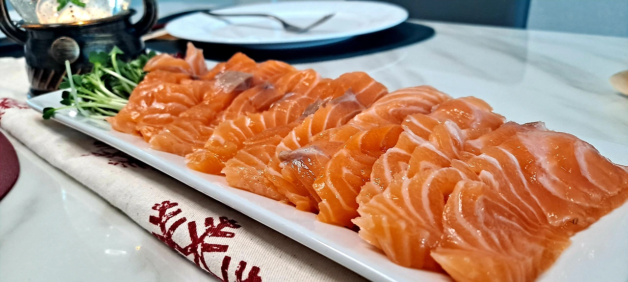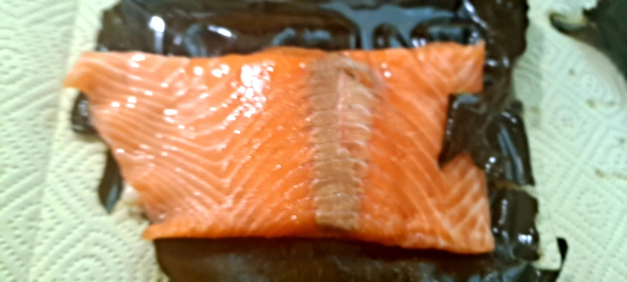2시간 전에 다시마와 숙성 소스 만들어 재워둔 숙성 연어는 스무 해도 전에 동생이 사다 주었던 나라의 명인이 이름까지 새겨주신 ( 관리를 잘 못했구나 싶지만 미국 이사에도 넣어갔다 가져오길 잘했다 싶은) 칼로 두툼히 썰어 놓고 ,