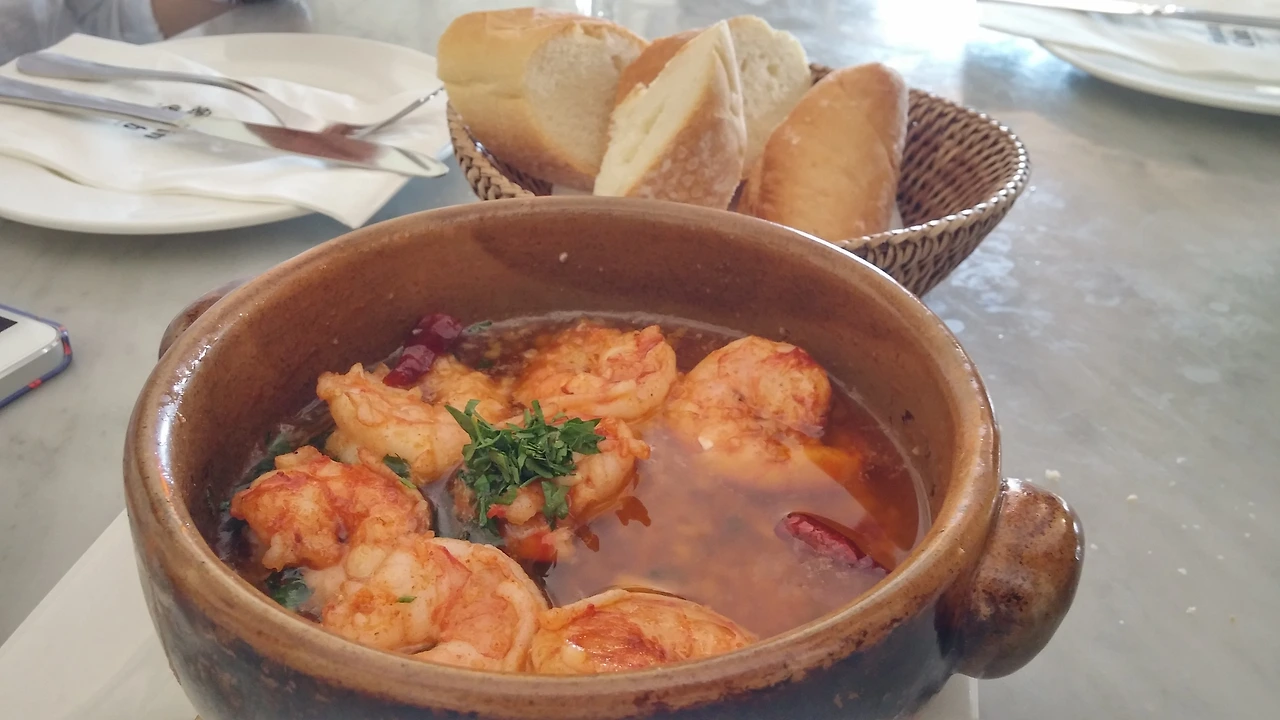마늘 올리브함에 곁들여지는 해산물.혹은 버섯류등을 바게트와 곁들여