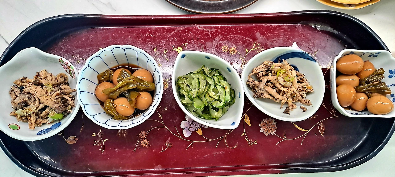 조금 뒤로 미뤄져버린 차남의 예비 신부와는 더더우기 미안한 맘이 곱절이라 일본의 정월 음식인 오세치모노중에 몇가지를 곁들였지요 금가루도 뿌리고