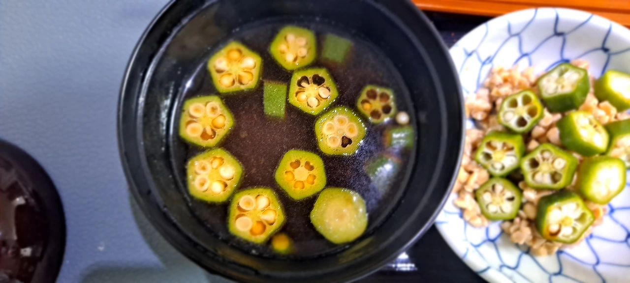 맑은 미소 장국을 끓이다 오크라를 넣고 불을 끄고...