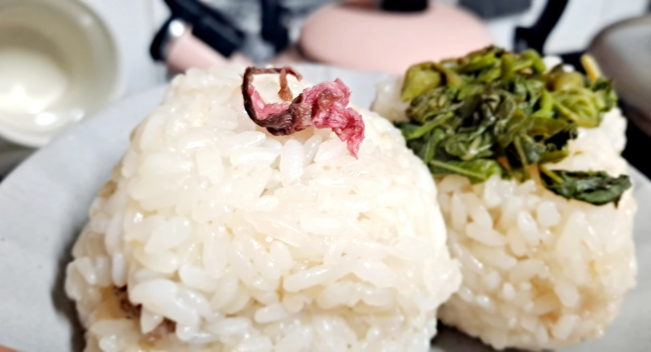 요리수업을 하며 만들었던 벚꽃 주먹밥을 광양 도립미술관을 가던 날 정성껏 만들었었다.