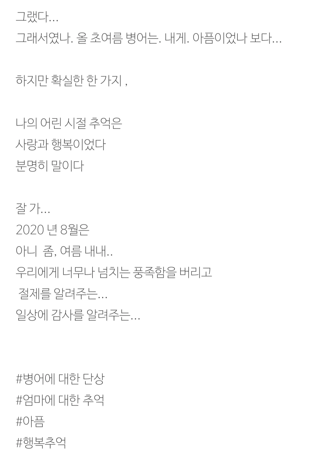 아니다 아마도 나의 엄마에 대한 의 그리움 때문이리라..