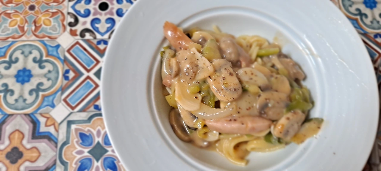 기호에 맞게 한 사람은 오일 파스타로 , 한 사람은 크림 파스타로 ( 부부라도 참 다릅니다 )