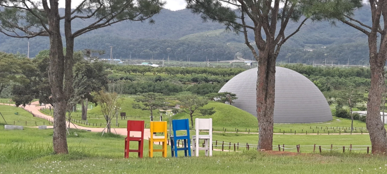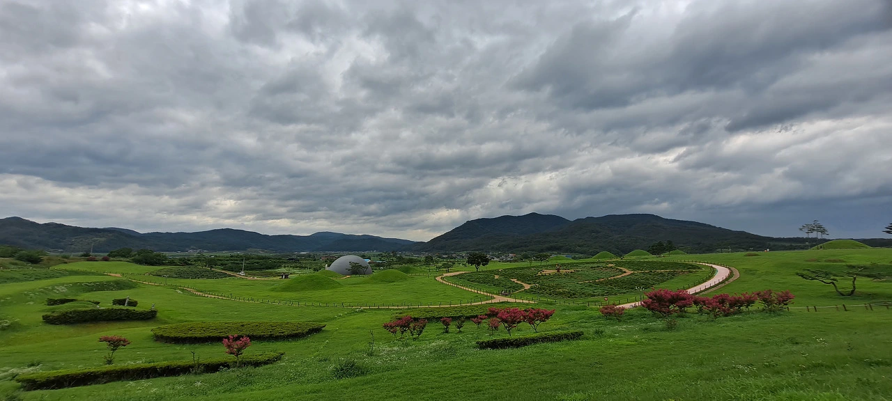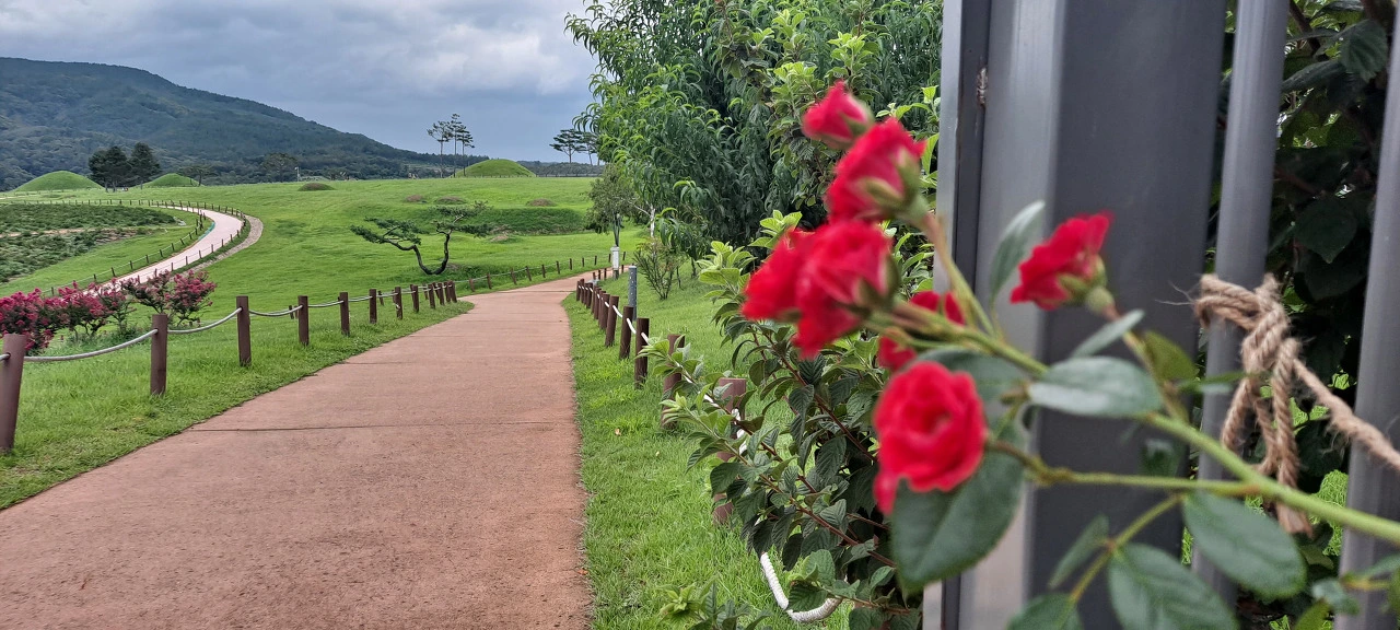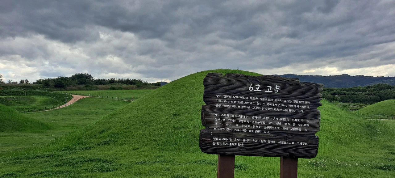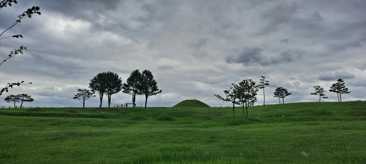 저 아래 회색 건물이 고분 전시장이었지만 월요일이라 굳게 닫혀 있었다