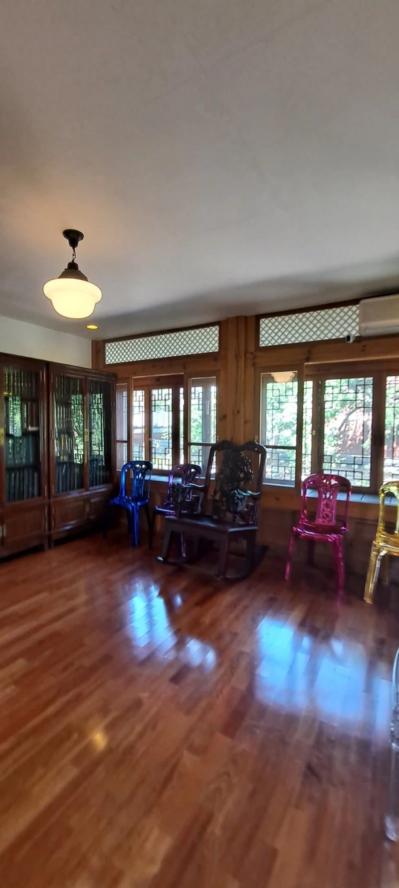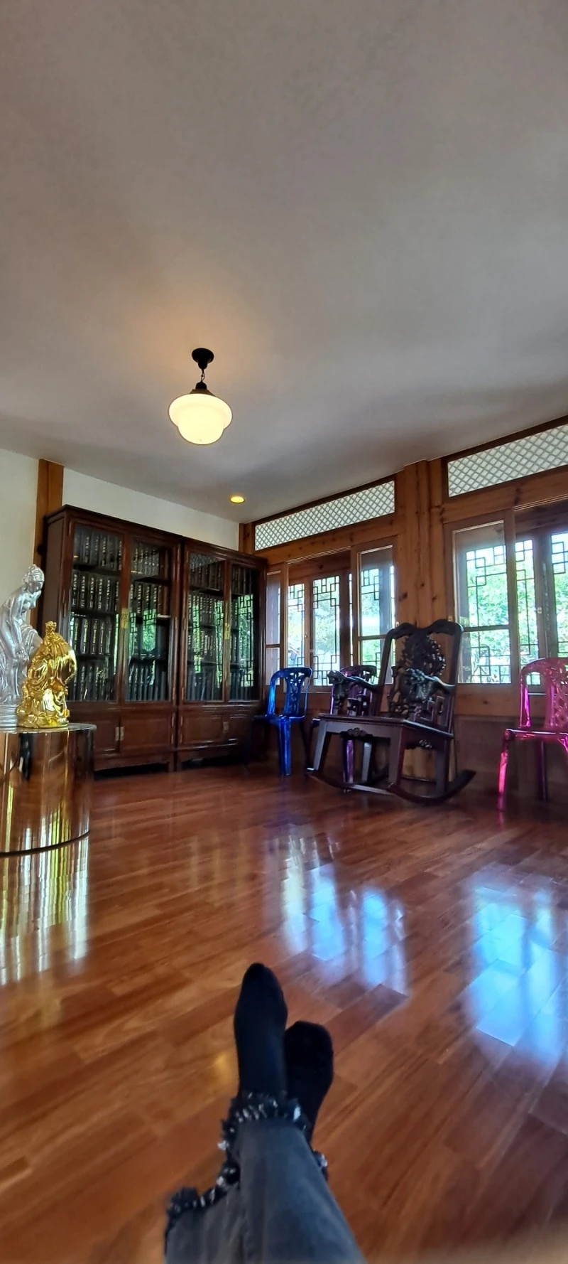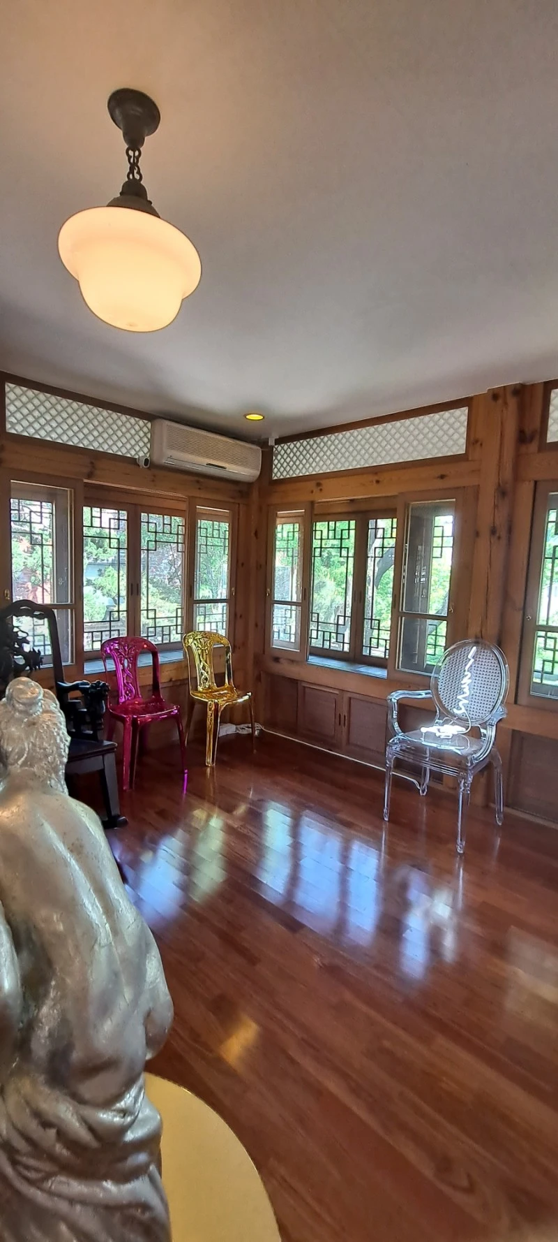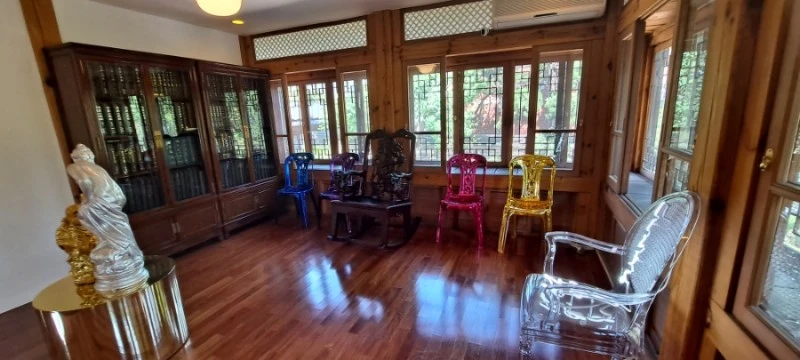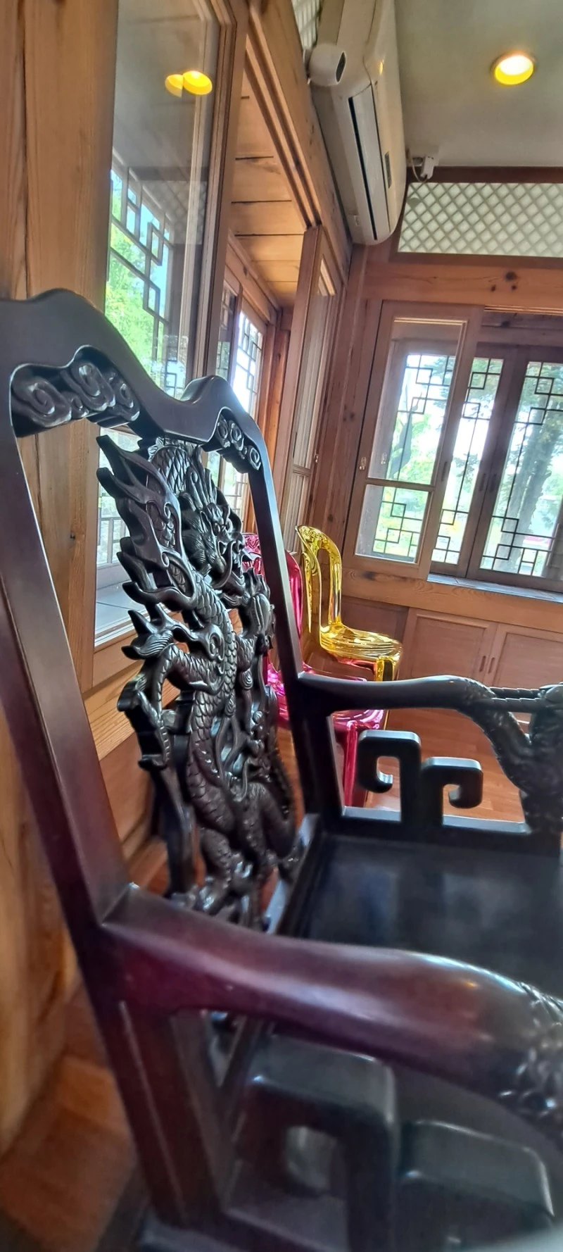 용이 양각된 의자는 사랑채에 잇던 의자를 옮겨 놓은 것이고, 이 전시된 방은 바로 정객들이 드나들면서 시대를 논하던 곳이었단다.