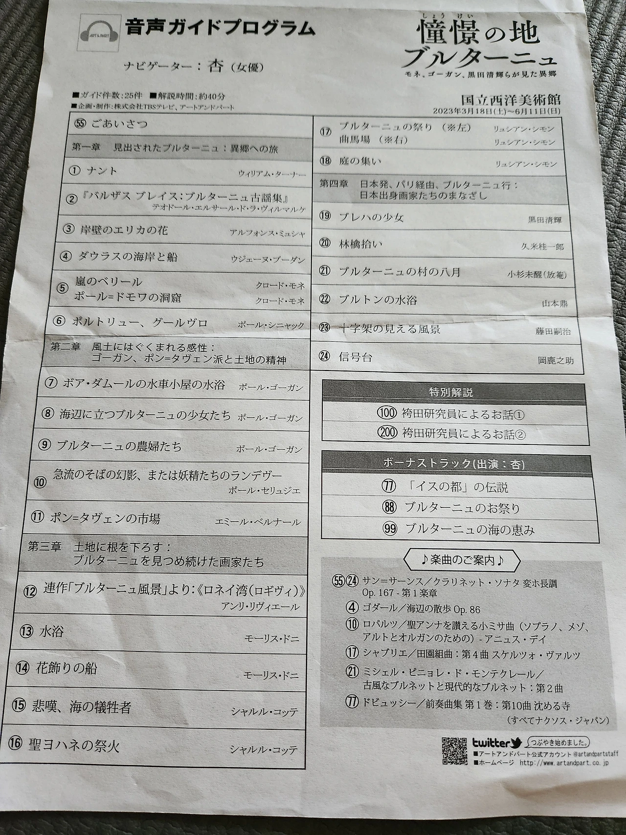 새삼 현대 미술의 계기가 된 고갱과 베르나르 그리고 퐁타방파와 나비파의 시원이 된 브르타뉴 지방을 돌아보게 된 것은 도쿄 국립서양미술관이 개최한 『동경의 땅-브르타뉴; 모네, 고갱, 구로다 세이키가 본 낯선 고장』 (憧憬の地 ブルターニュ; ―モネ、ゴーガン、黒田清輝らが見 た異郷, 2023년 3월 18일~6월 11일) 전 때문이다. 미술사에서 하나의 지역을 주제로 하는 전시회로 여러 곳을 상상할 수 있겠지만 브르타뉴는 생각이 닿지 않았었는데 막상 전시를 보면서 많은 화가가 충분히 매력을 느끼고 달려갈 만한 곳이란 생각이 들었다. 인상파 화가들이 주로 그림을 그렸던 노르망디 해안은 돌아보았지만 브르타뉴도 충분히 매혹적인 곳이란 생각에 “세상은 넓고 갈 곳은 많다”는 생각을 잠시 했다. 다소 생소한 화가들의 이름과 작품도 있었지만, 변화하는 세상과 담을 쌓고 자신들의 종교와 신화 그리고 말을 지키며 고집스럽게 살아가는 사람들의 천상에서의 삶과 또 다른 행복도 가치 있고, 의미 있는 법이란 것을 새삼 깨달았다.
