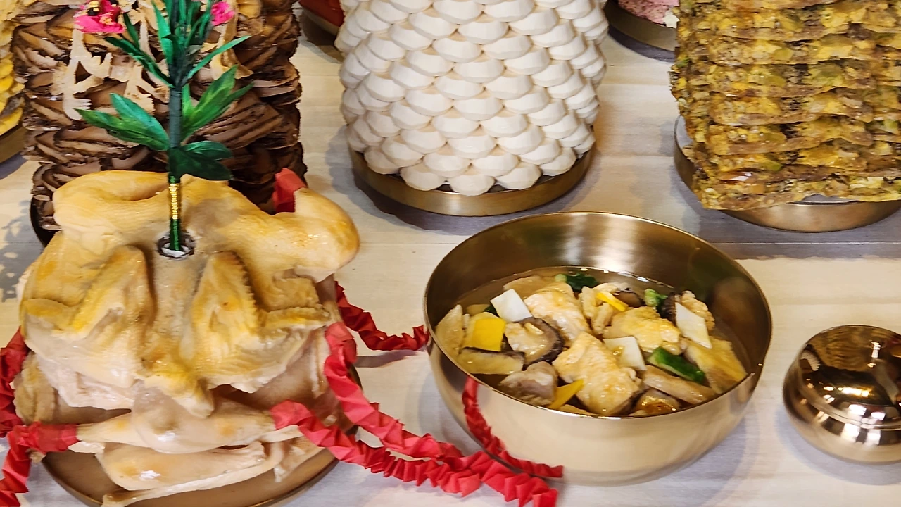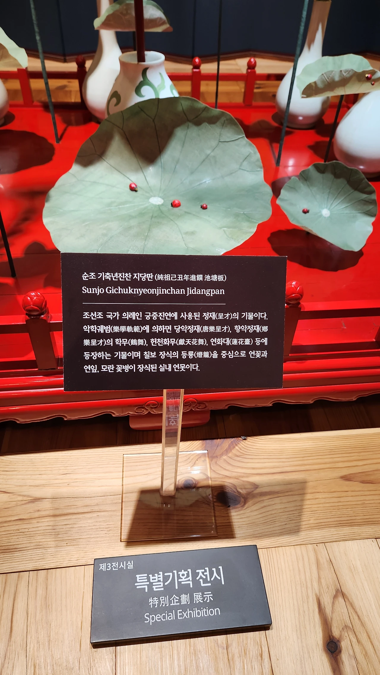 고종정해진찬의를 재현한 전시실이 있다. (1887년 1월 대왕대비이신 신정왕후 조 씨의 팔순을 기념하는 궁중 대 향연시 상차림과 꽃 장식들이다 )