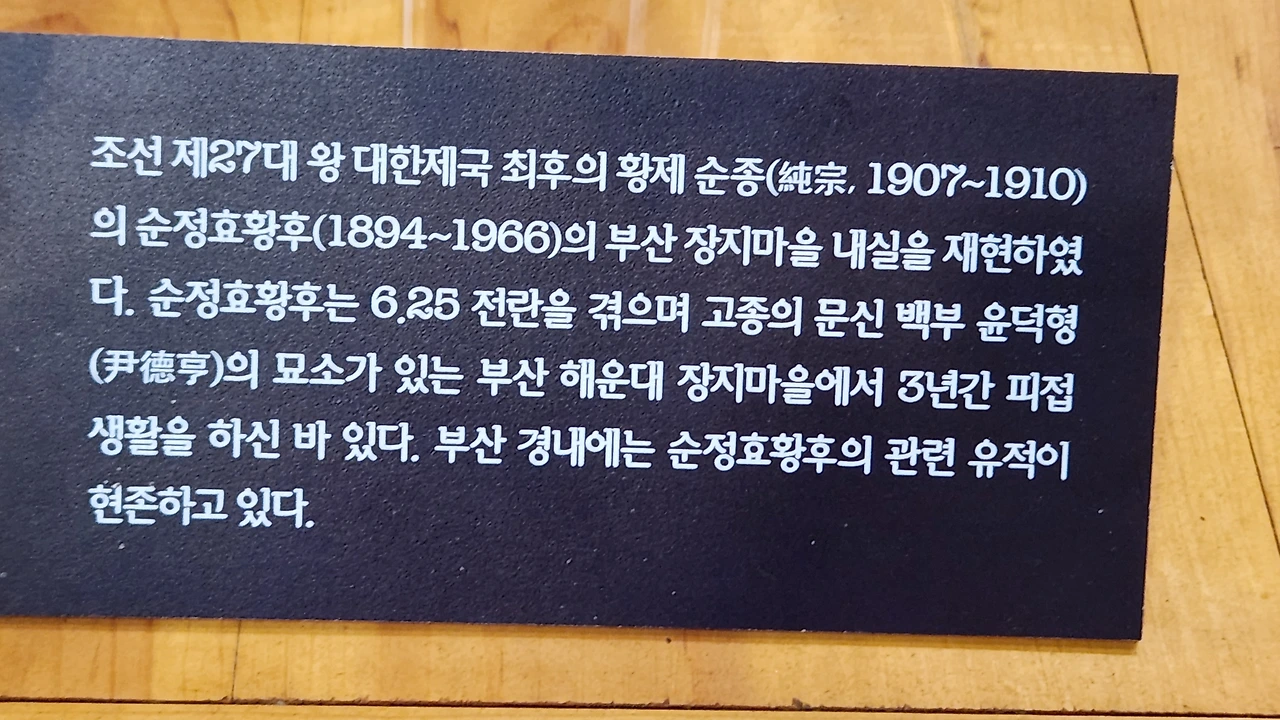 조선 제27대 왕 대한제국의 최후의 황제 순종의 순정효황후의 부산 장지마을 내실을 재현해놓았다.