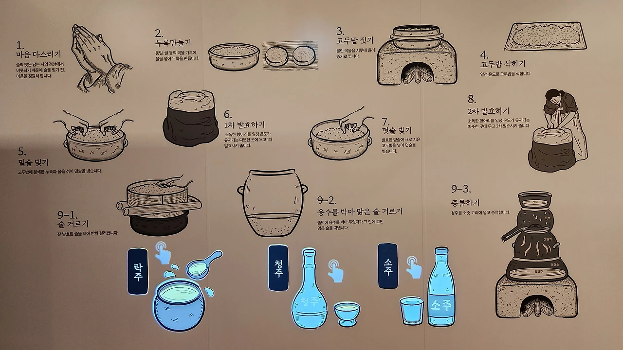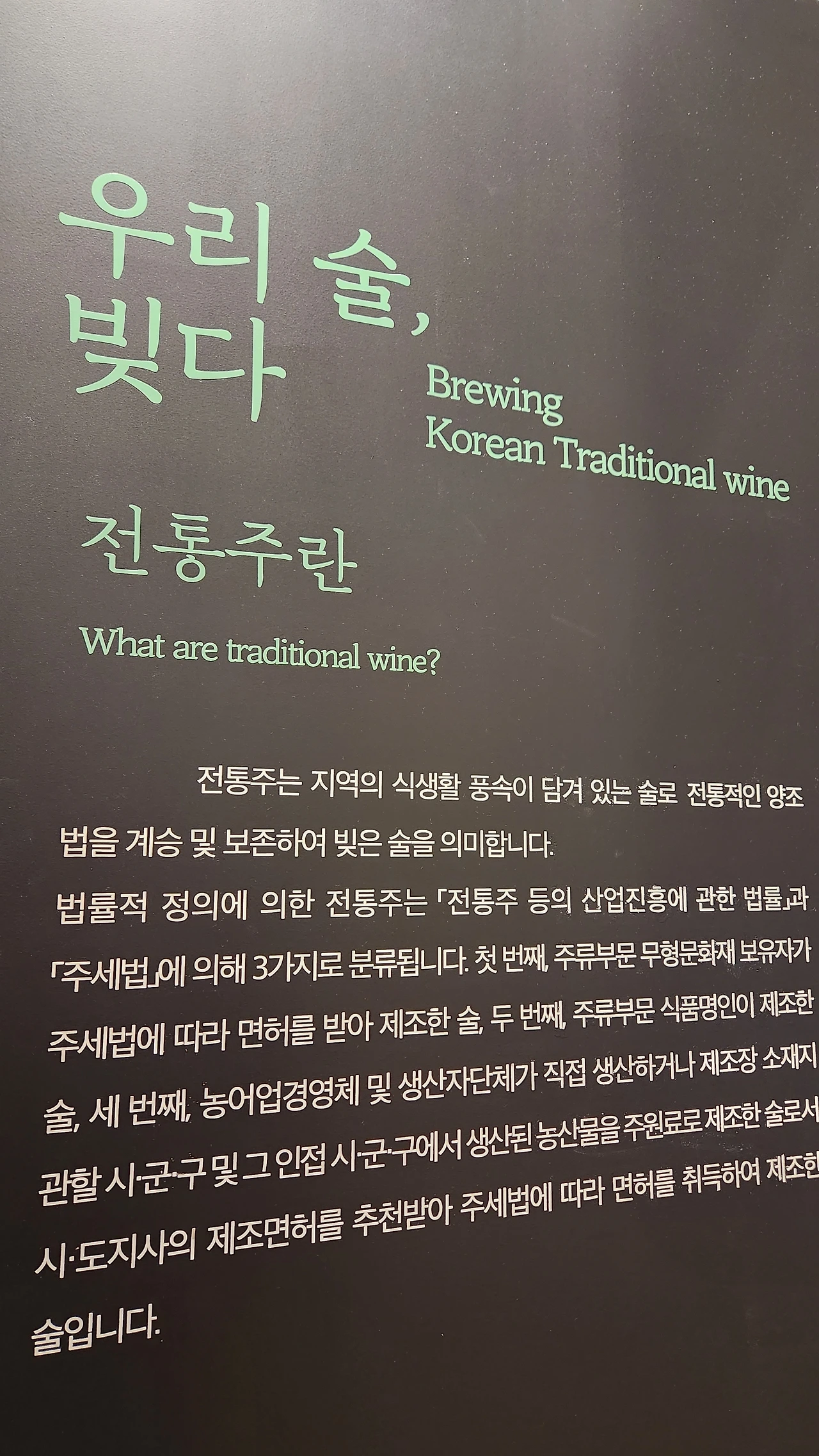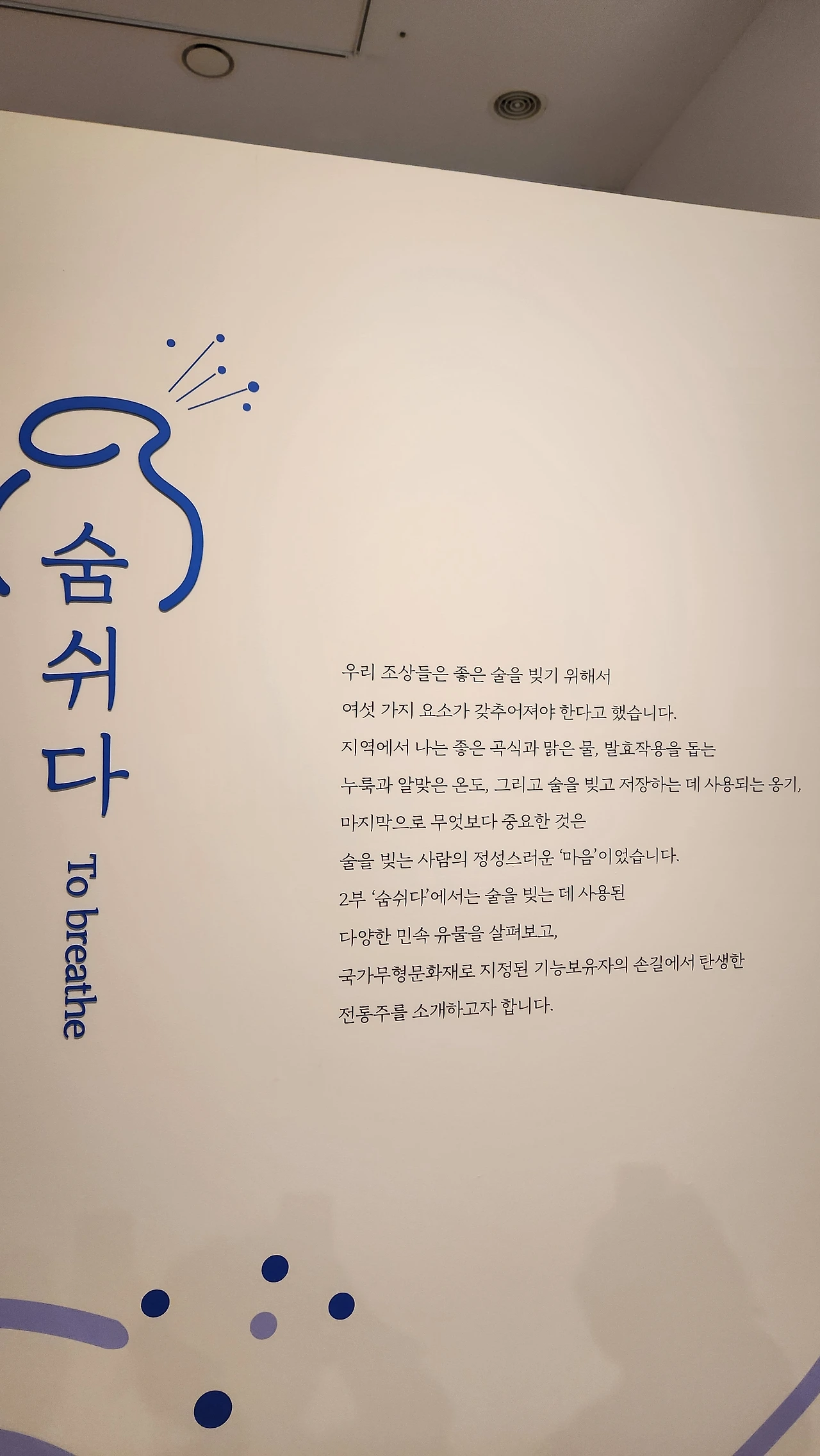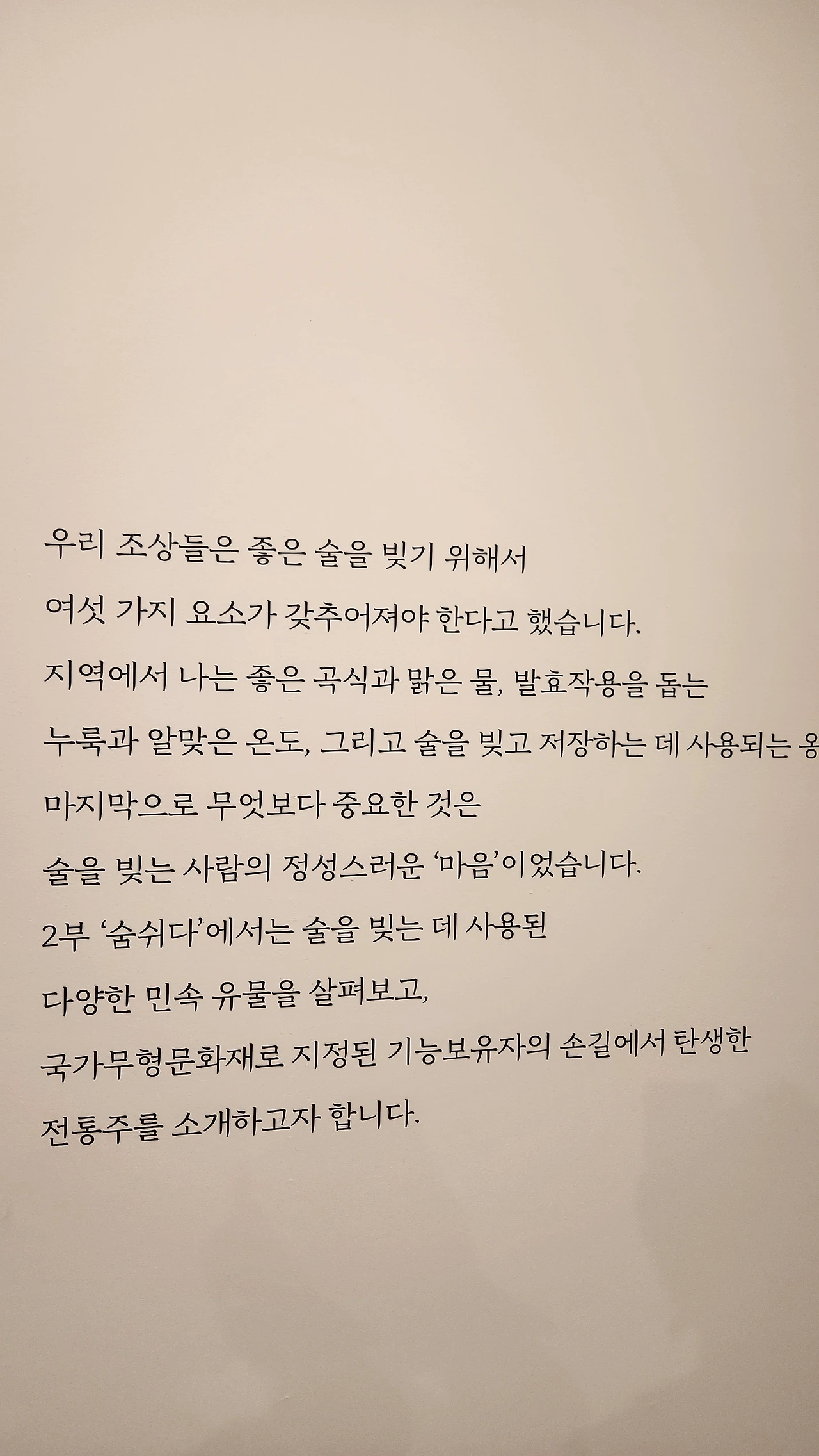 2층 전시실엔 우리의 전통주를 옹기에만 드는 과정과 소개로 가득한 전시가 진행 중이다.