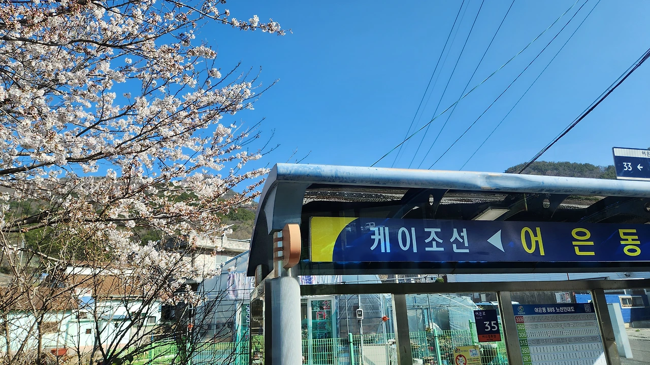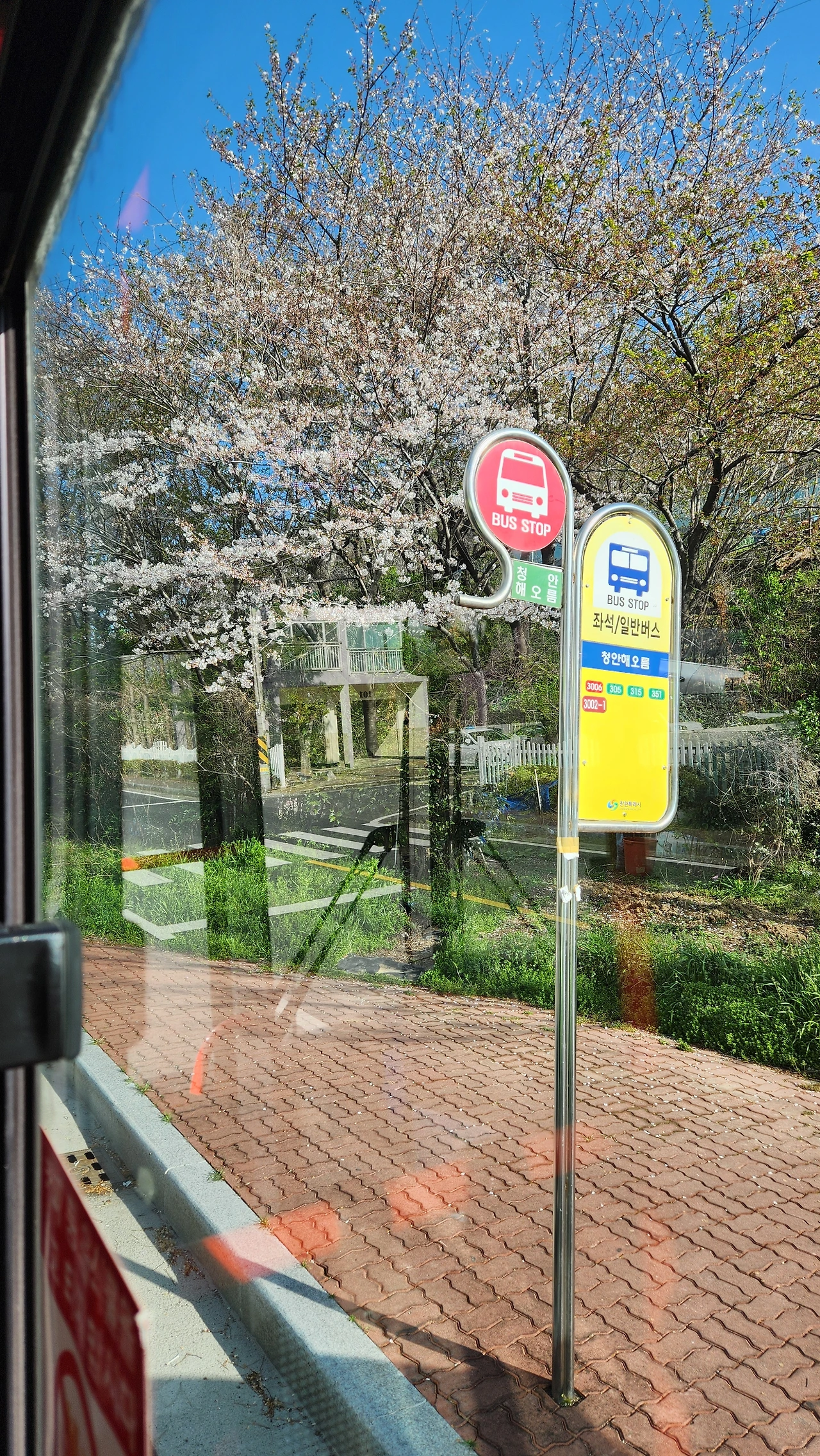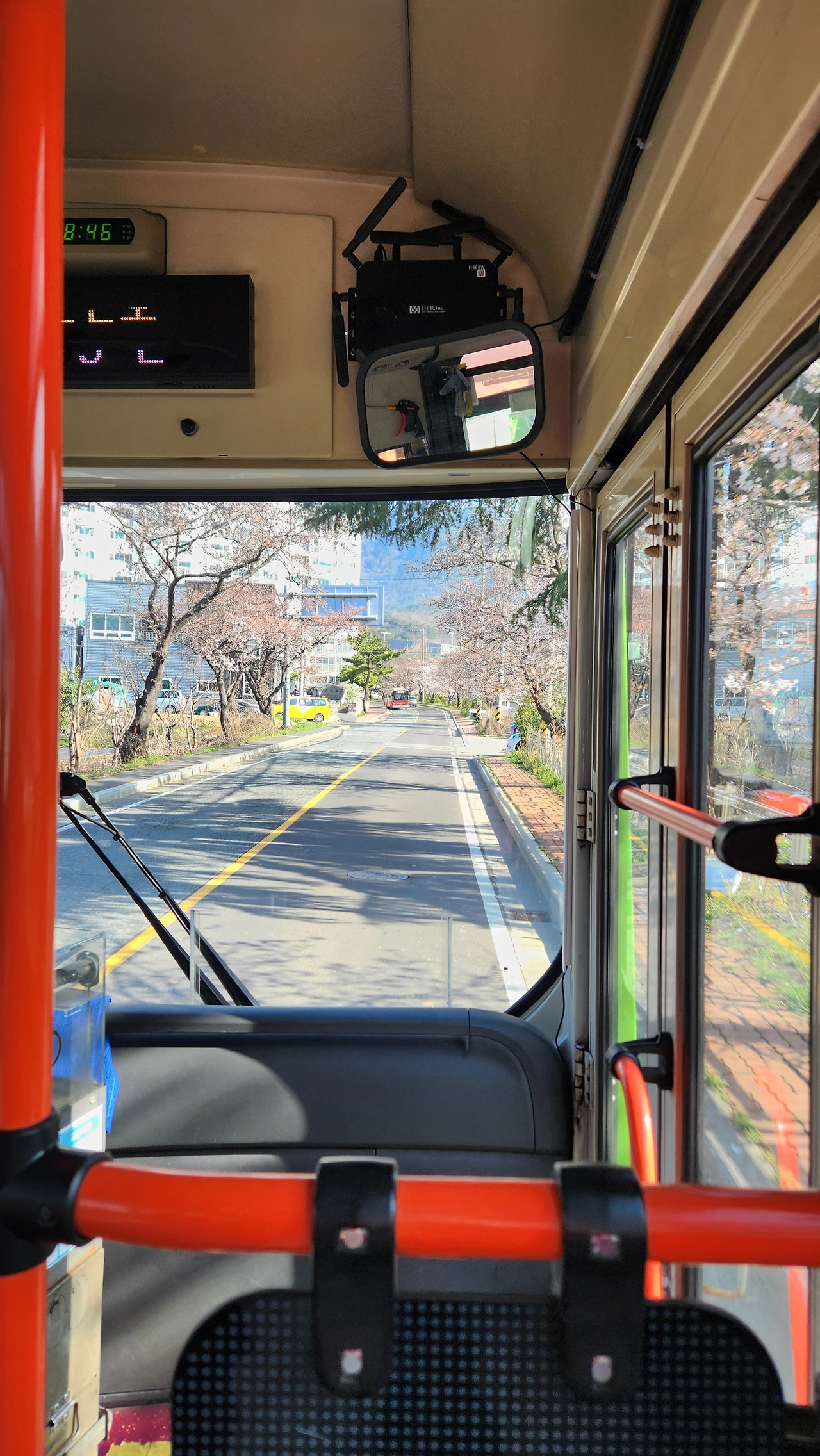 사택 앞에서 동네버스를 타고 진해로 나가는 길의 봄풍경을 애정한다.