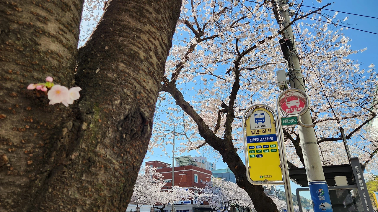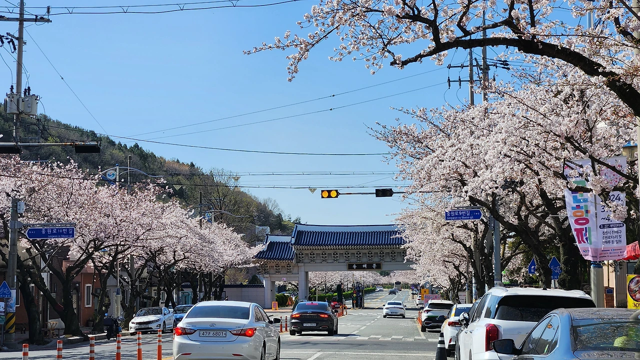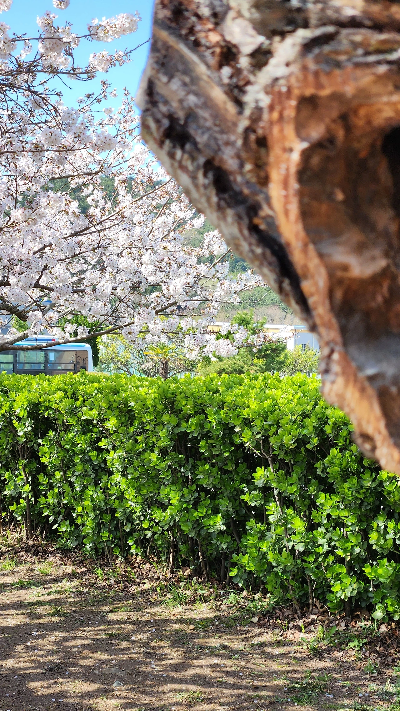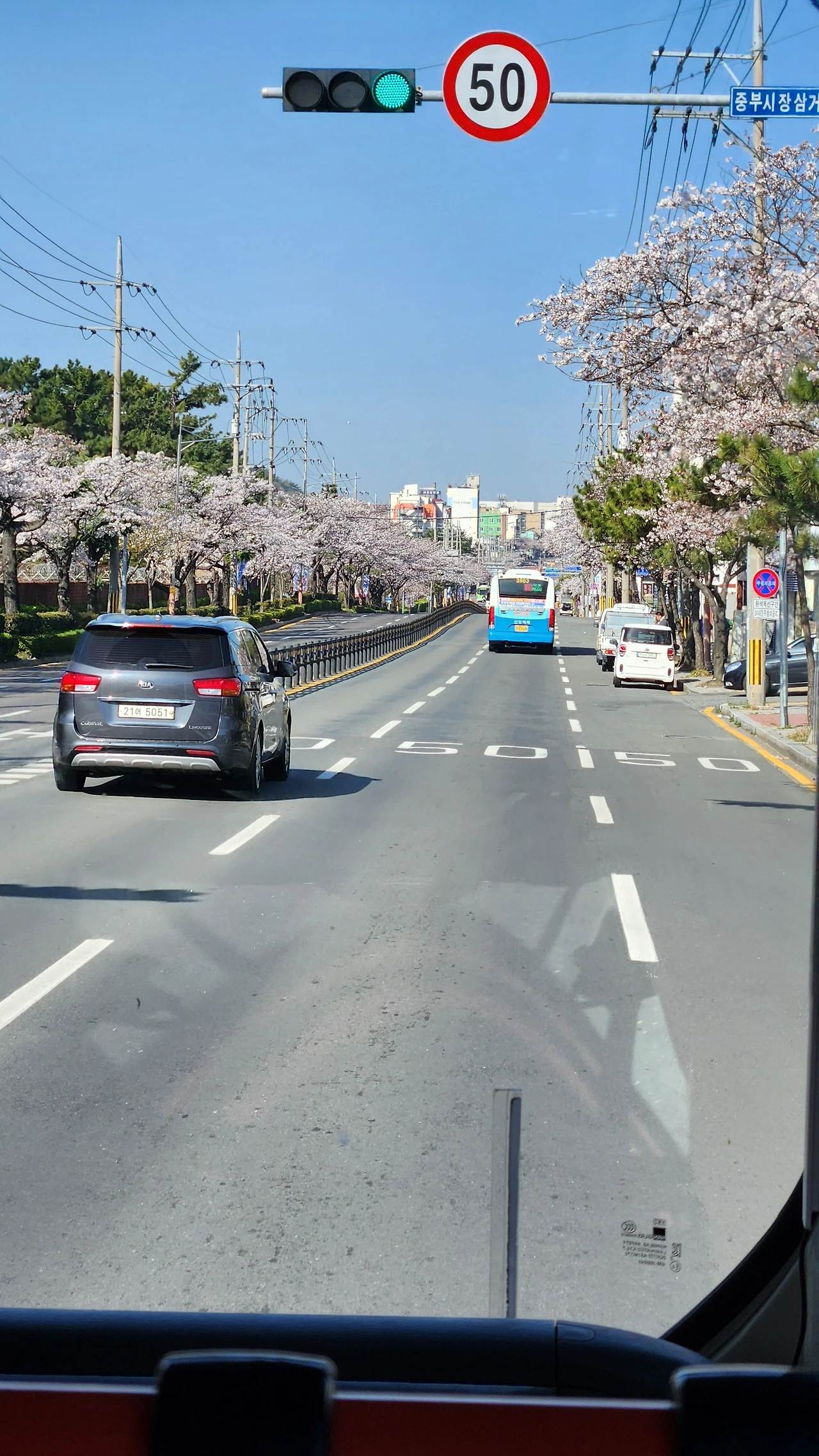 사택 앞에서 동네버스를 타고 진해로 나가는 길의 봄풍경을 애정한다.