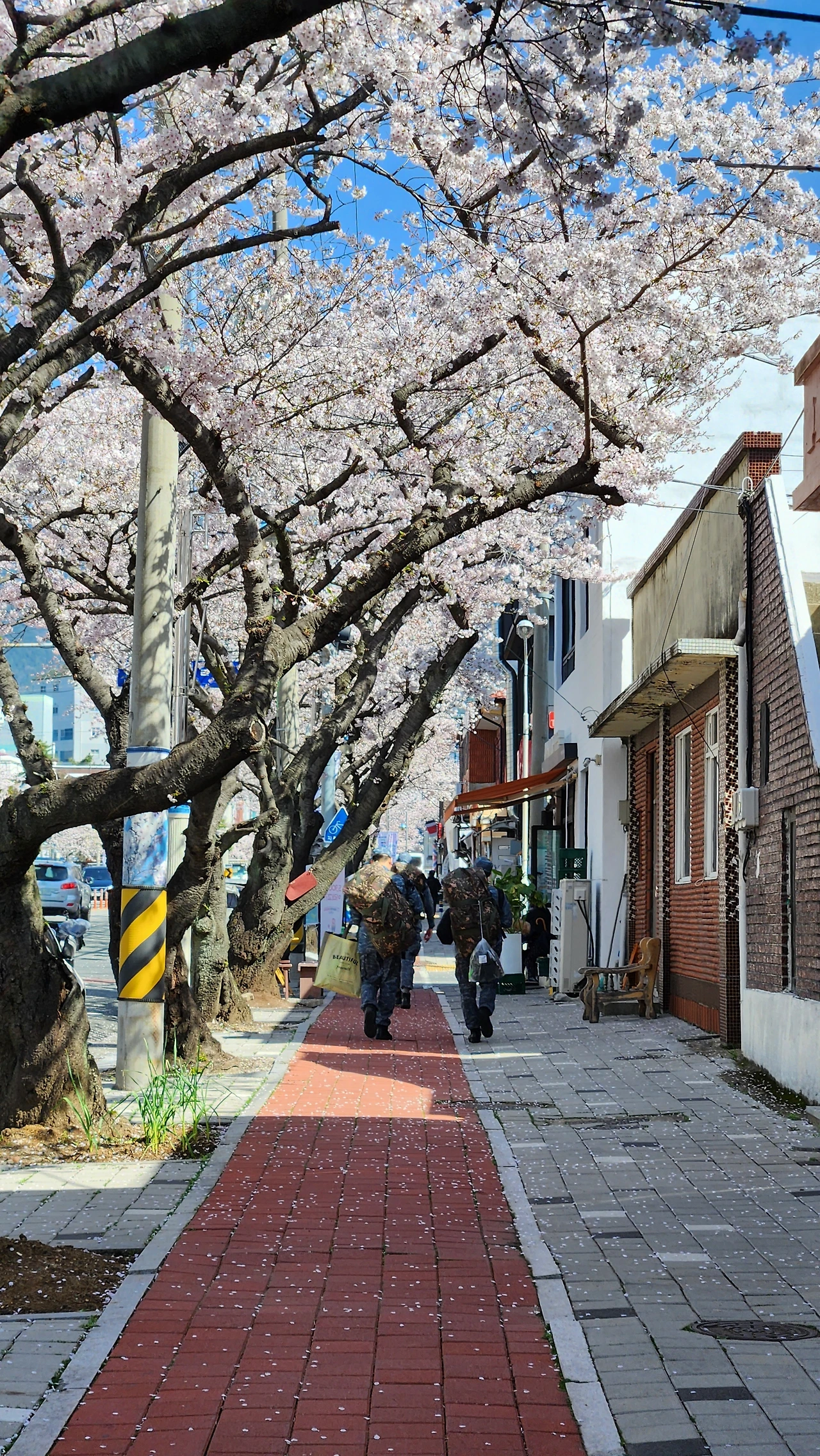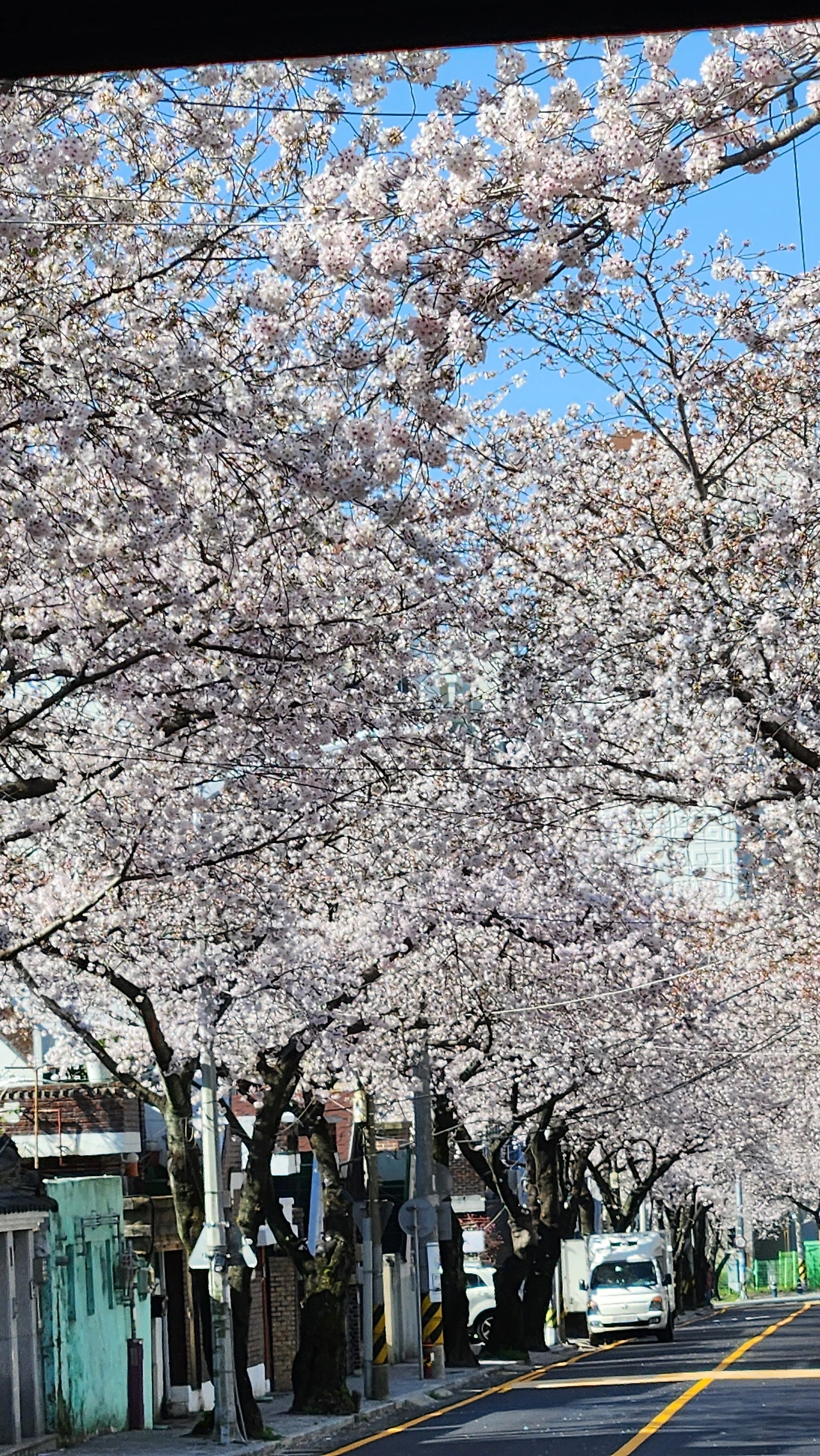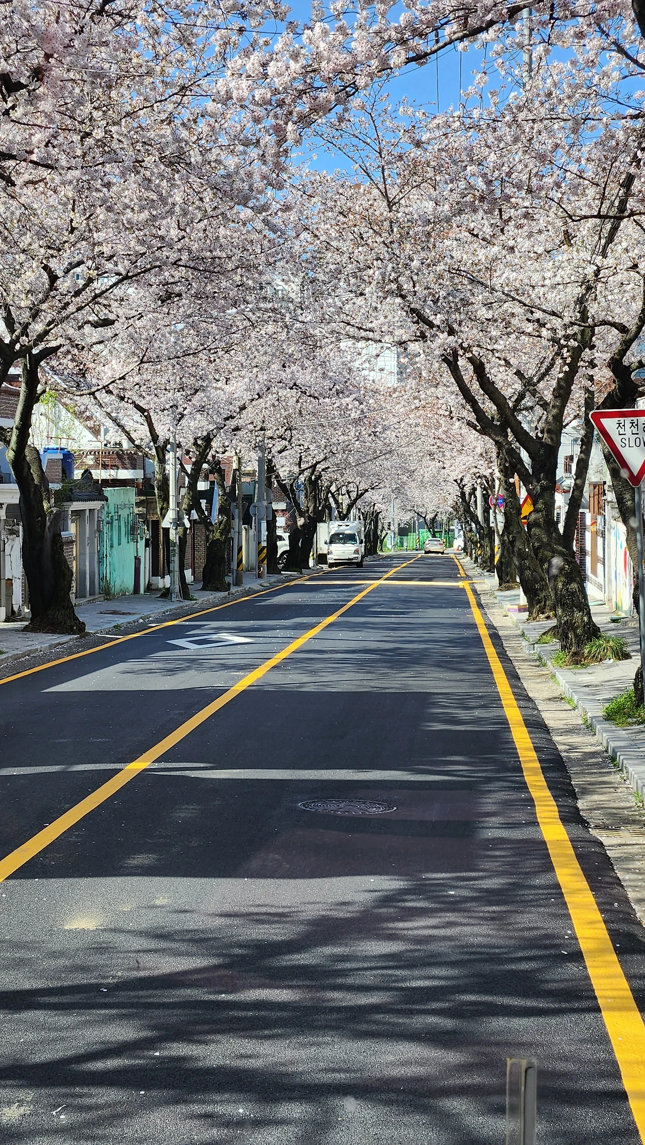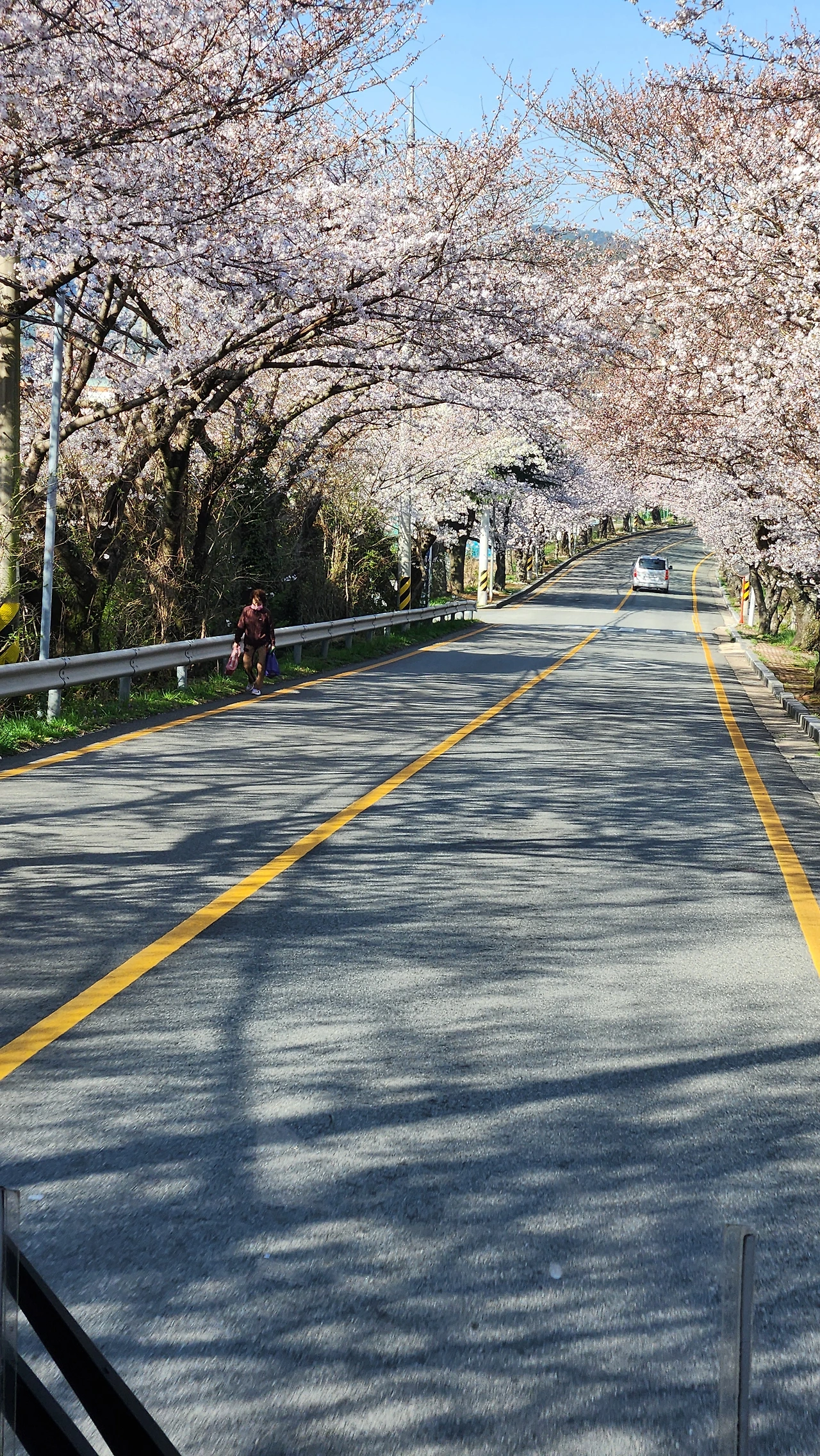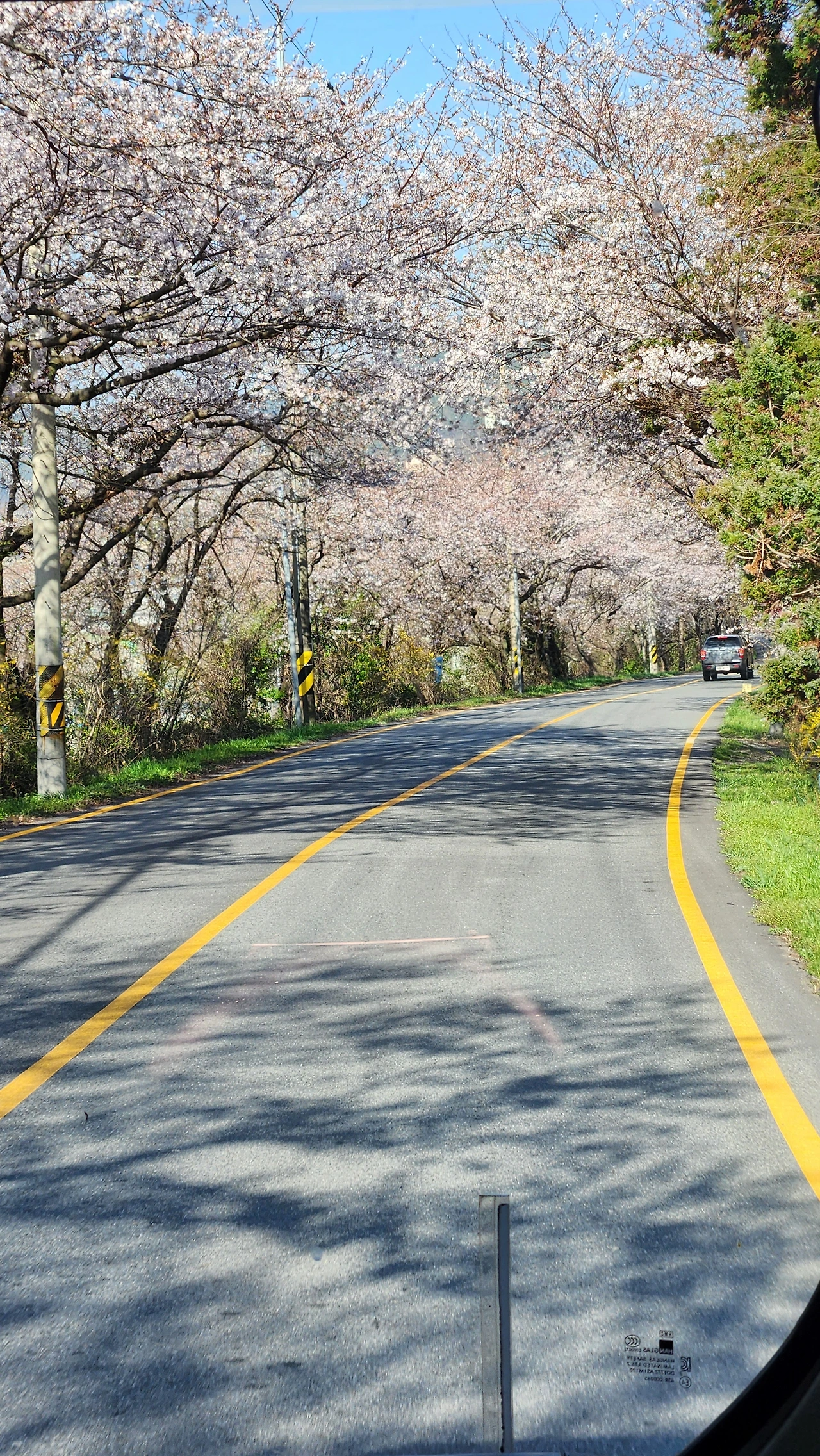 몇 번의 벚꽃동굴길은 마음은 몇 번이나 내리고 싶지만 걷기엔 조금 위험스러운 마을옆길이 이어진다.