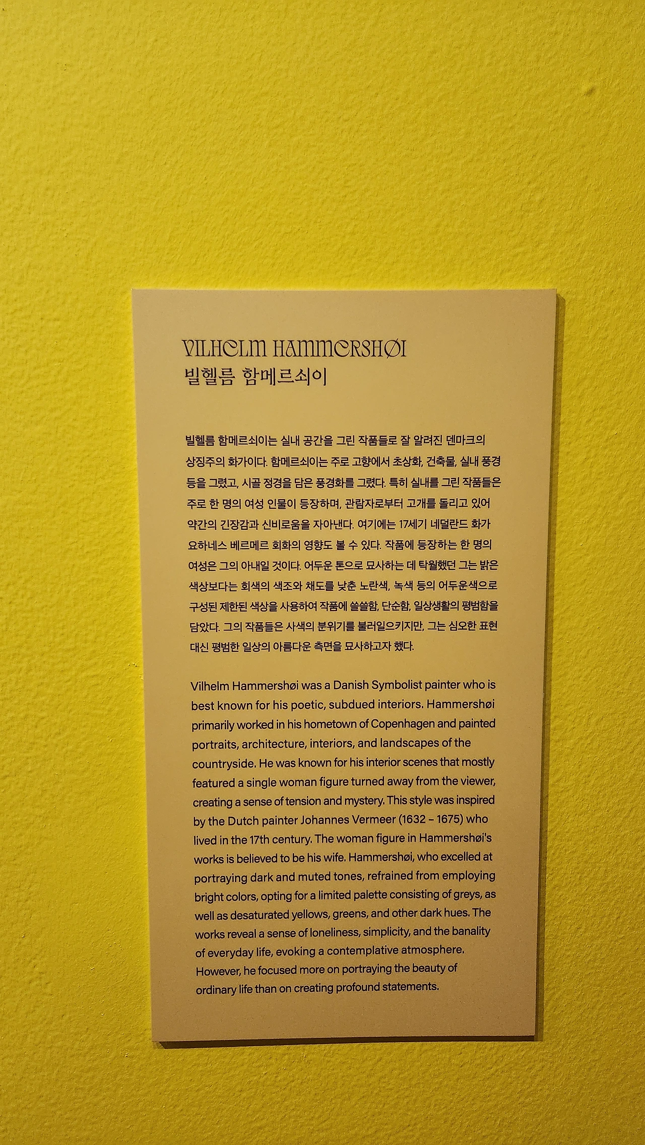 몇 해 전 동경 우에노 도립미술관 특별전에서 만났던 반가운 작가, 빌헬름 함메르쇠이의 공간에 대한 작품에 눈길이 유난히 마물렀었다