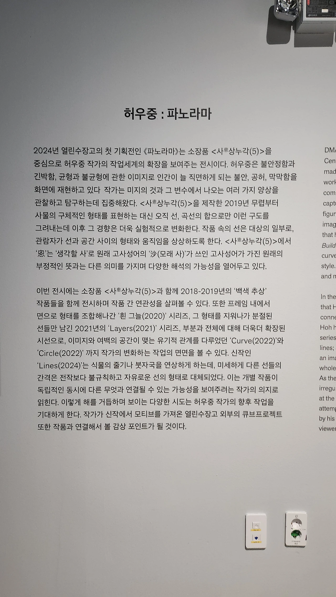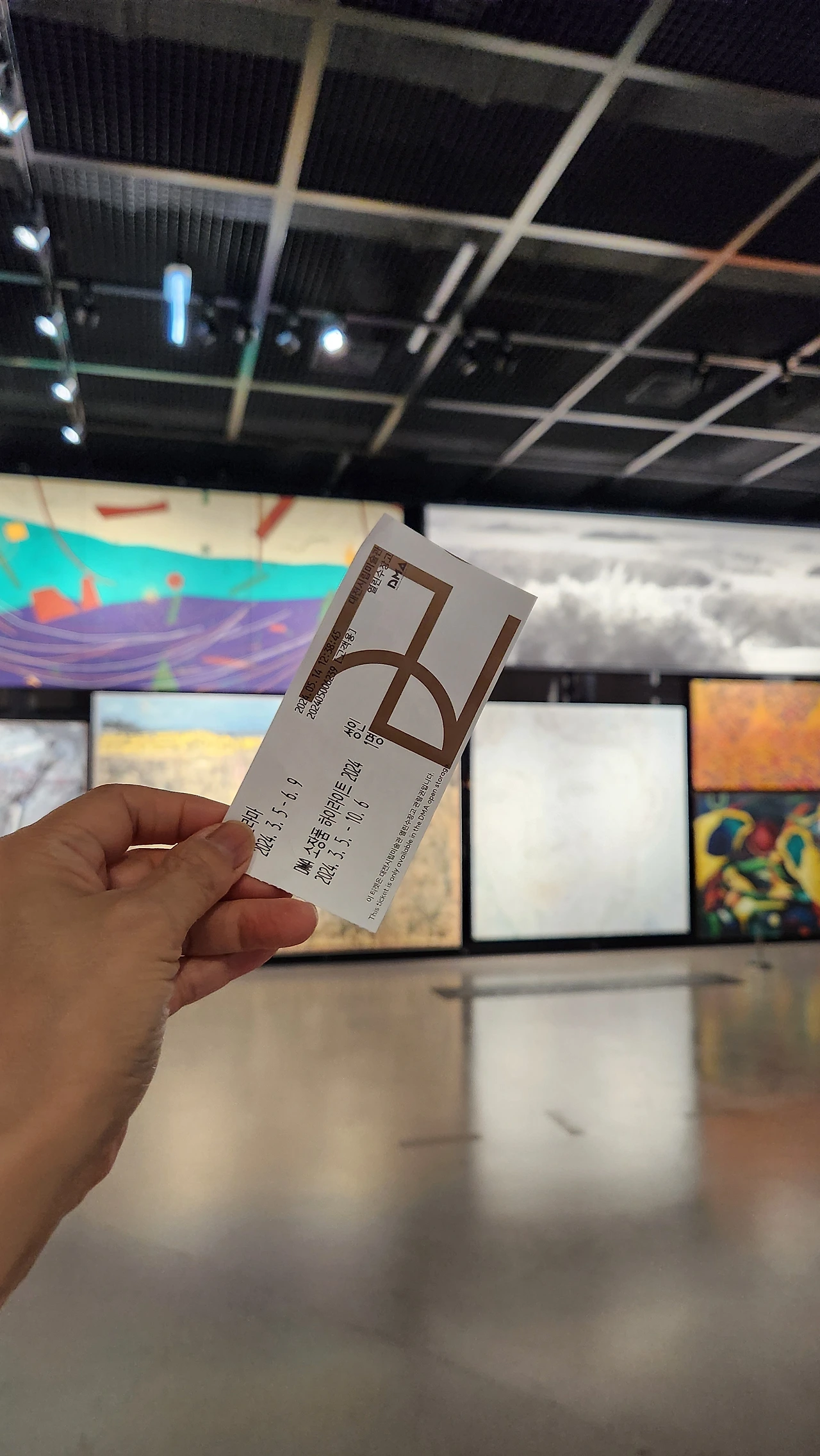 유영국[Work]1968, 장욱진 [풍경]1983, 류경채[날 87ㅡ5,87ㅡ6]1987, 과 같은 근현대 작품부터강철규 [편향]2022, 이덕영[미완의 계단]2023, 장동육[생존확인]20 ×1등 주목받는 신진작가의 작품까지 DMA컬렉션의 다양한 면면을 확인할 수 앗다.
