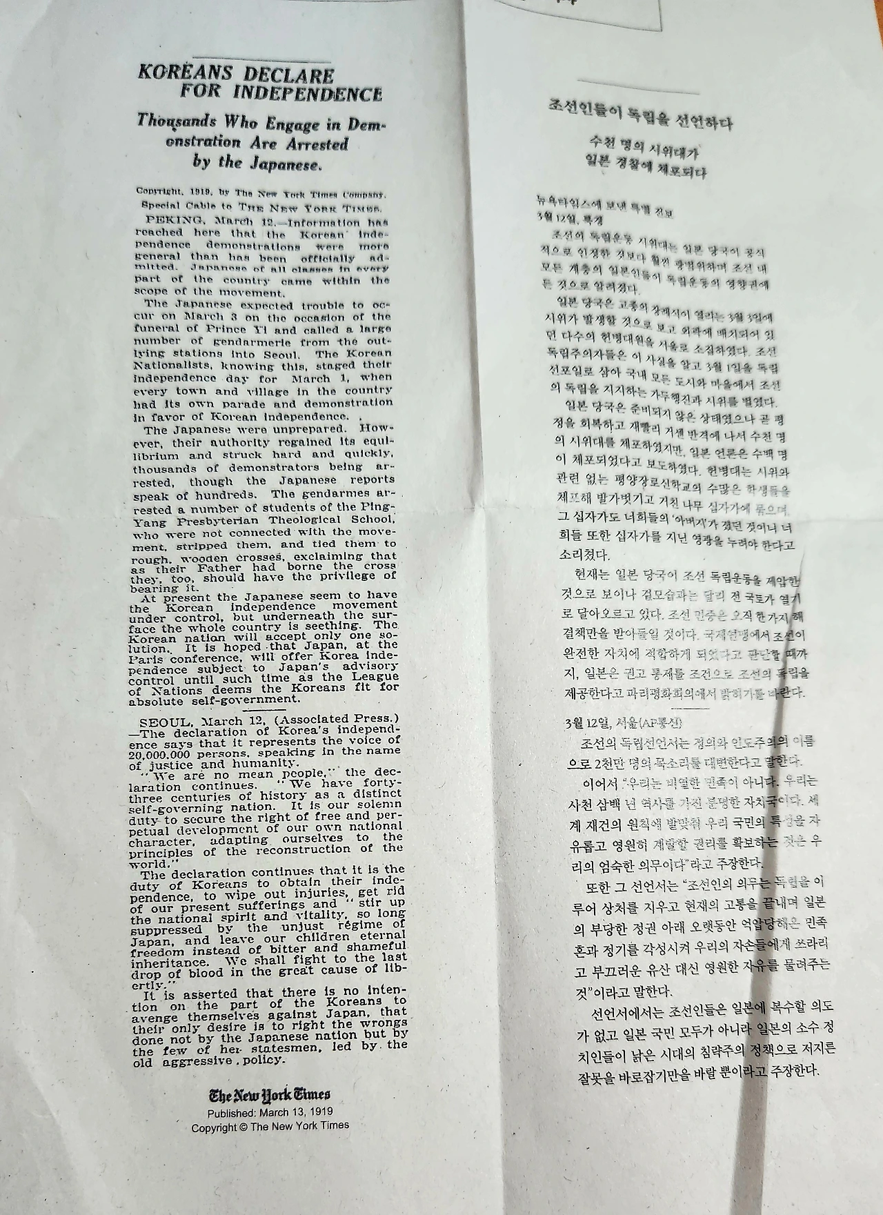 한국애서 AP통산원으로 활동한 앨버트는 1919년 2월 28일, 우연히 독립산 언서를 발견하고 3-1, 우동에 대한 기사를 작성했다