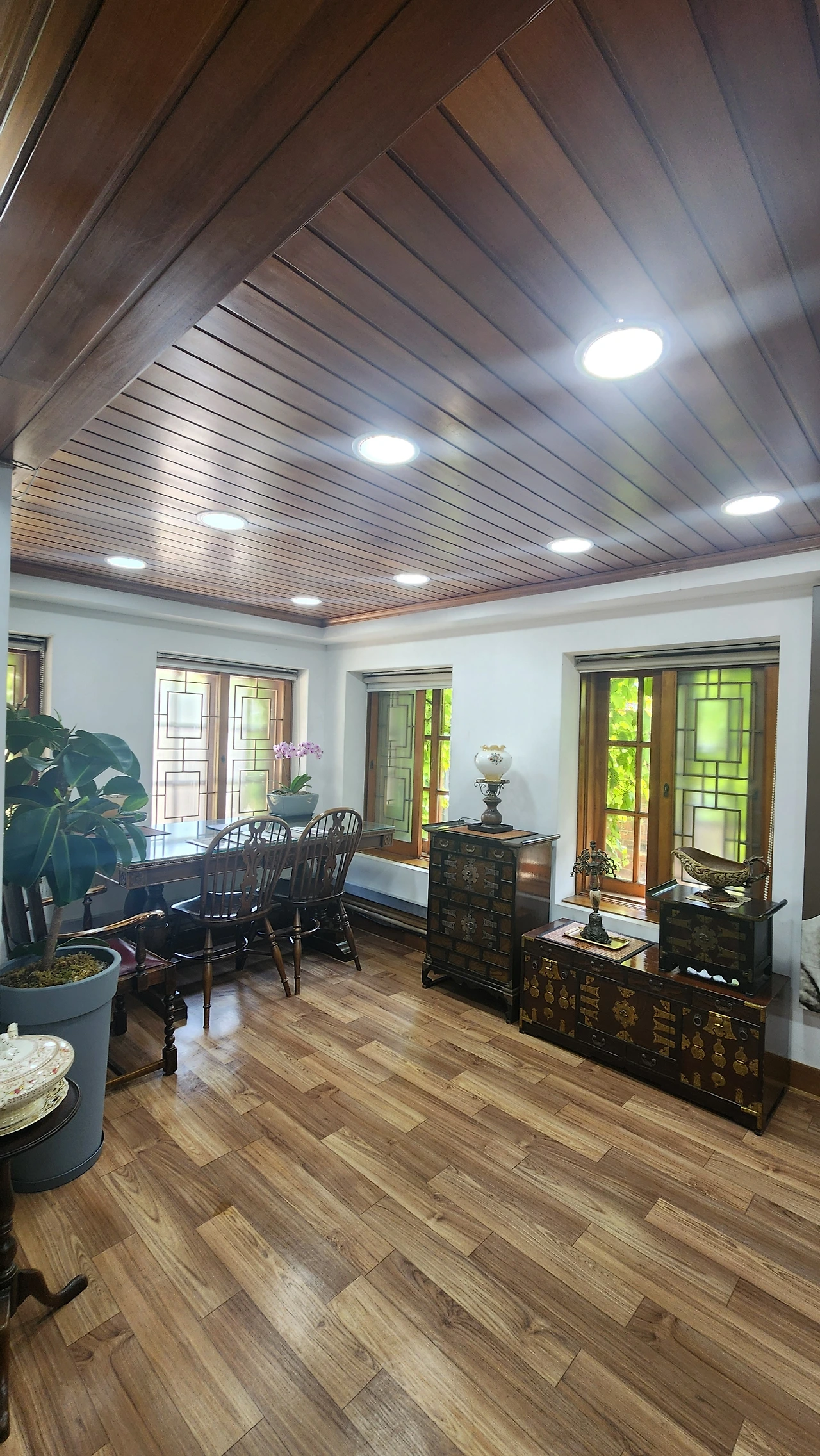 내부의 1.2 층거실엔 한국의 수가 놓아진 병풍부터 시작하여 가구 공예품들이 가득했다