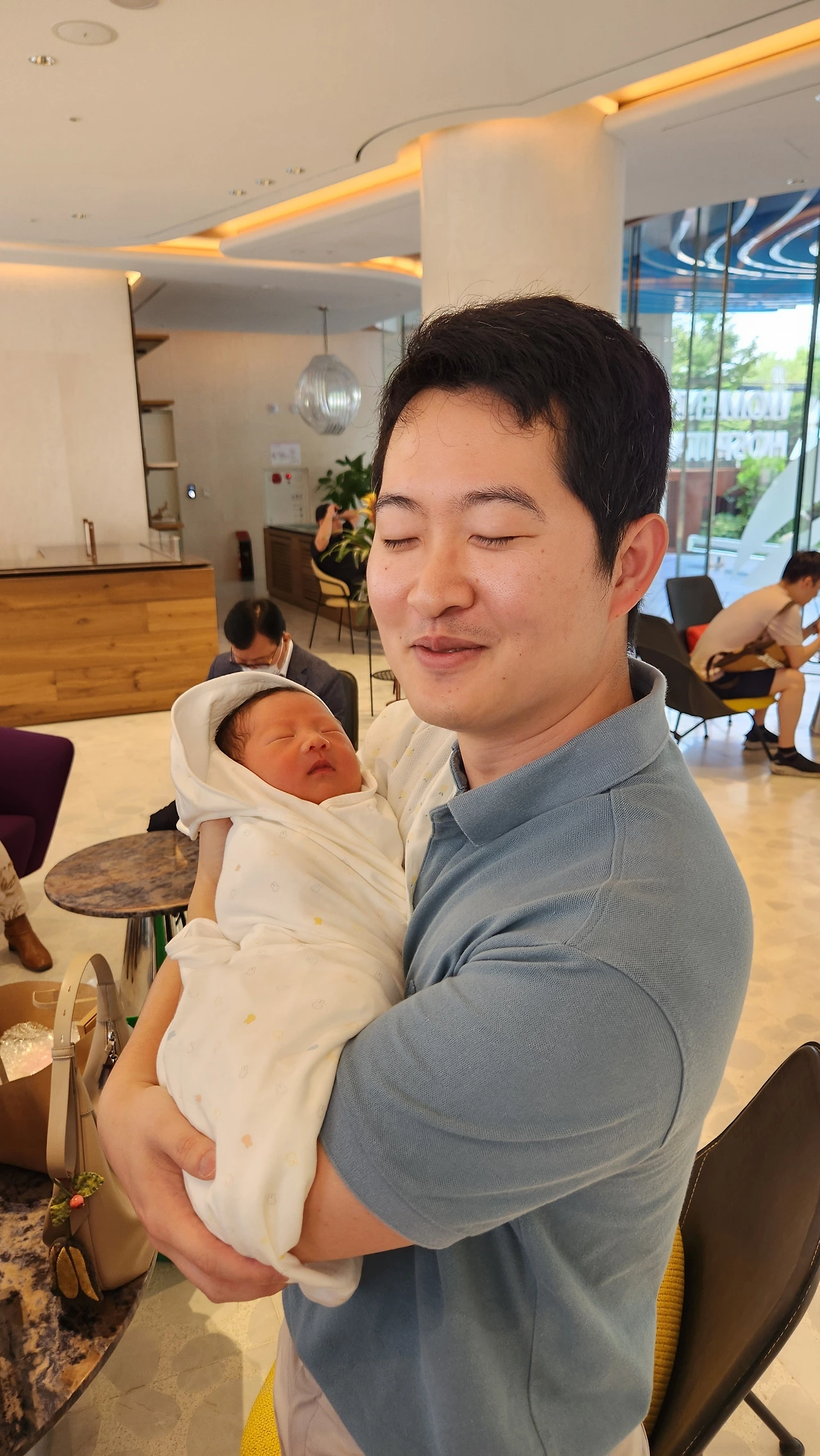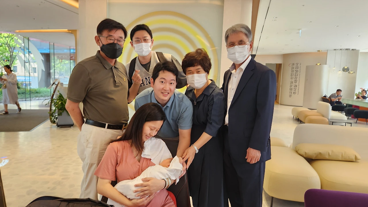 처음으로 아들을 안아보며 무척 떨린다는 장남 그리고 양가 기족들과 기념사진도 찍던 훈훈한 시간이었다.