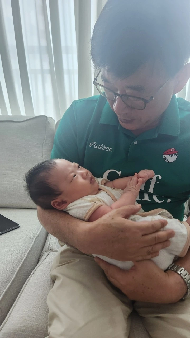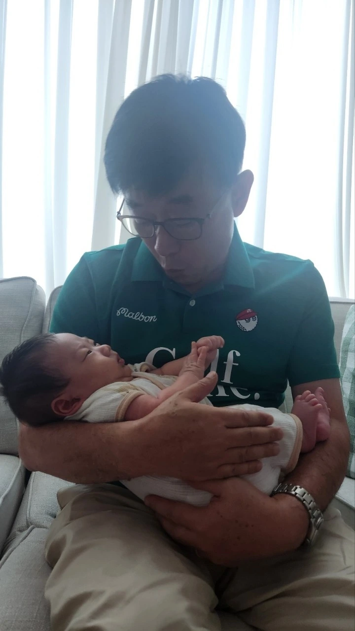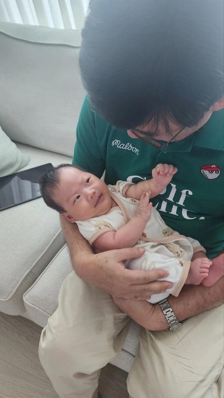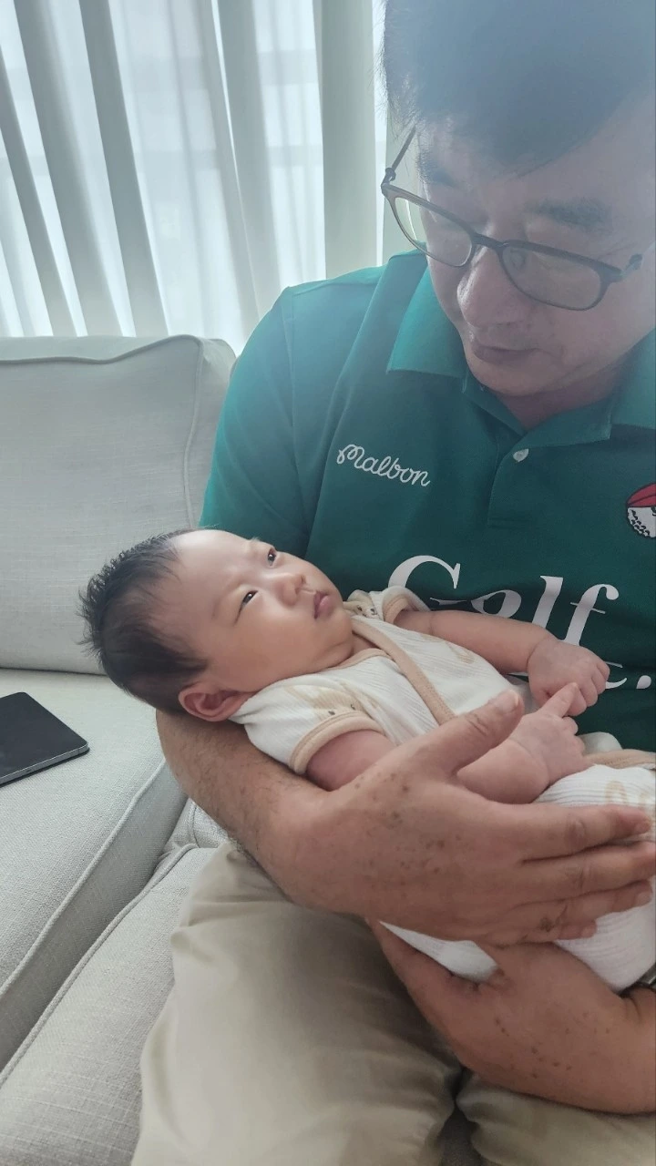 딱 두 달 되던 여름날 어설픈 태도여 찌만 첫 손주를 안고 입이 찢어진 손주바라기 할아버지!