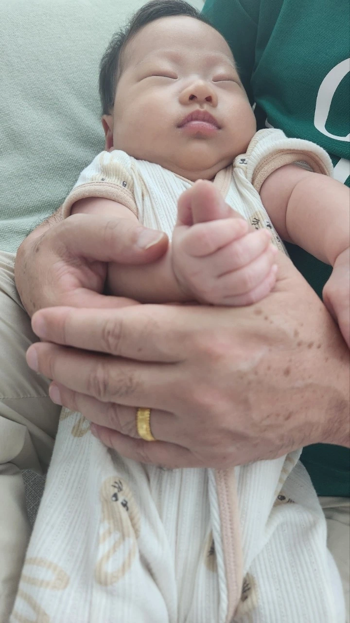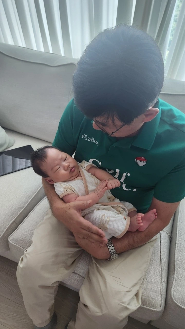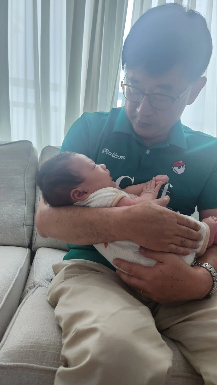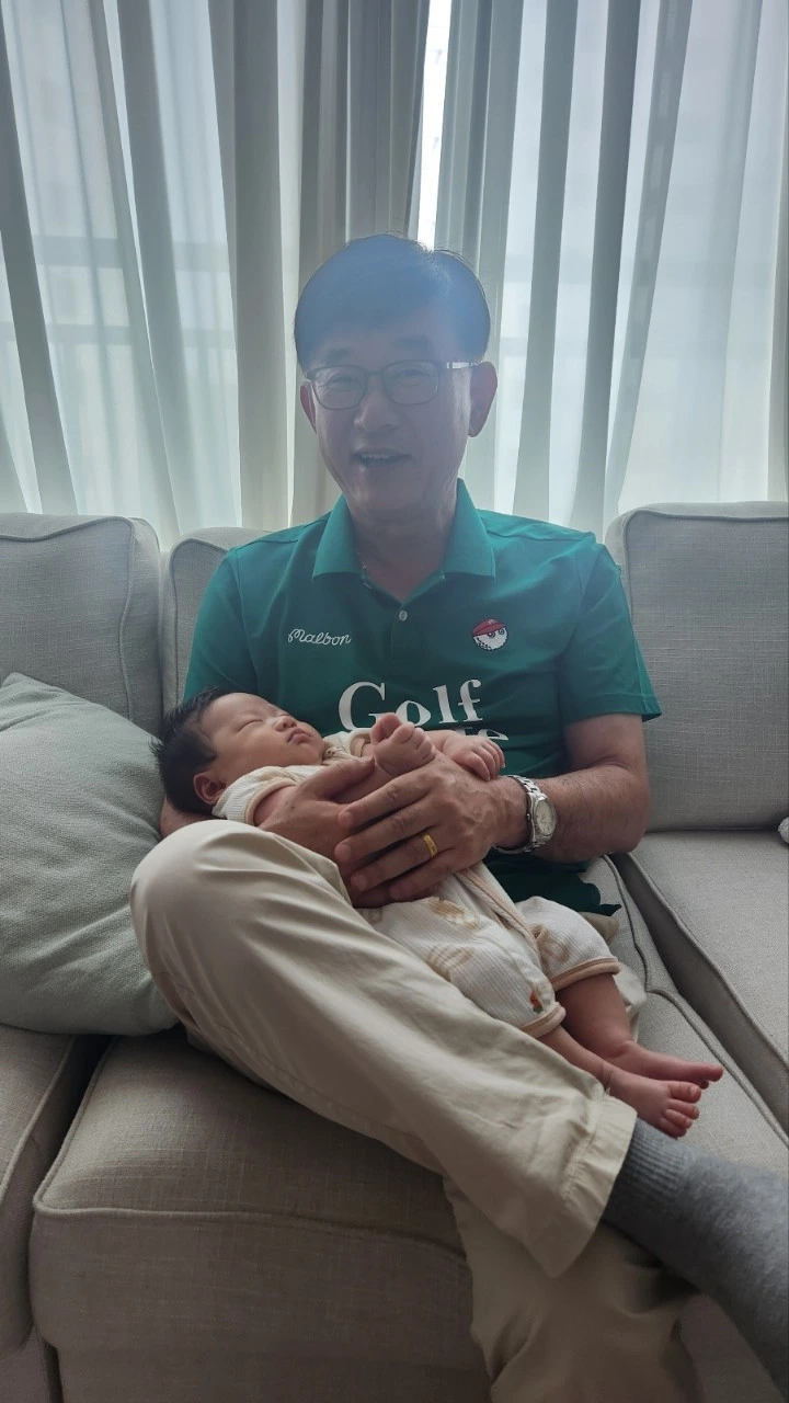 딱 두 달 되던 여름날 어설픈 태도여 찌만 첫 손주를 안고 입이 찢어진 손주바라기 할아버지!