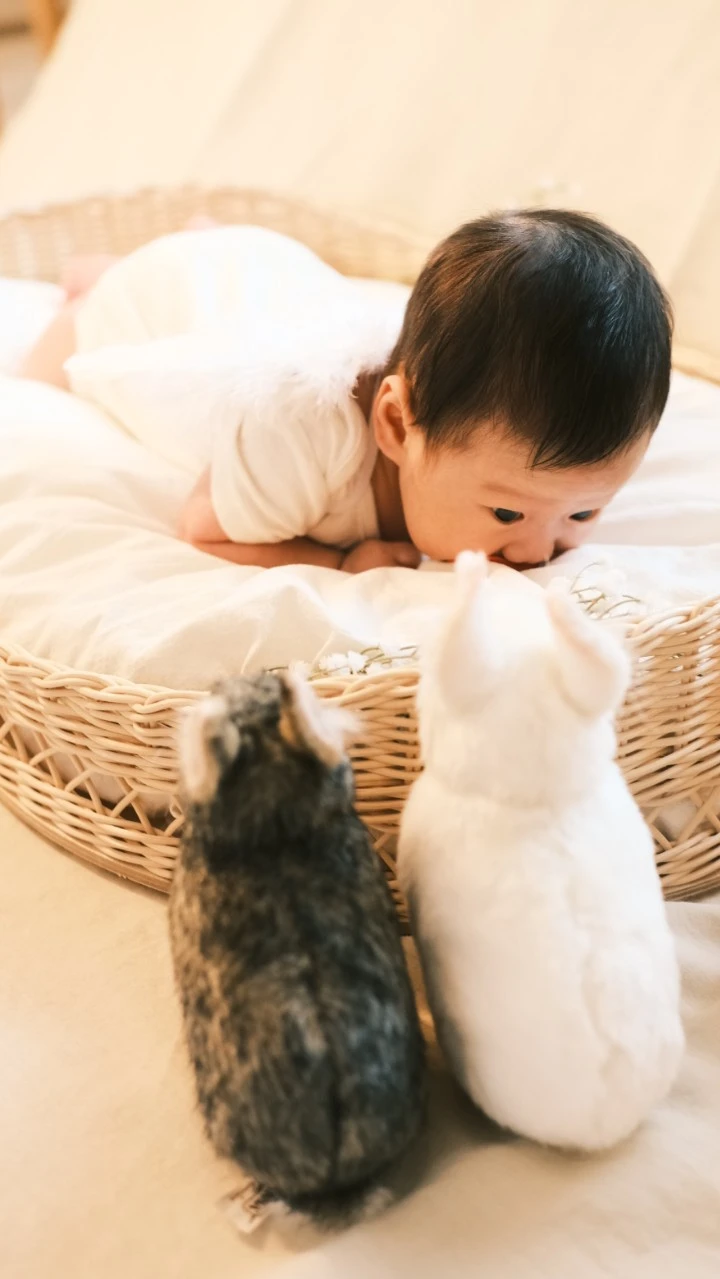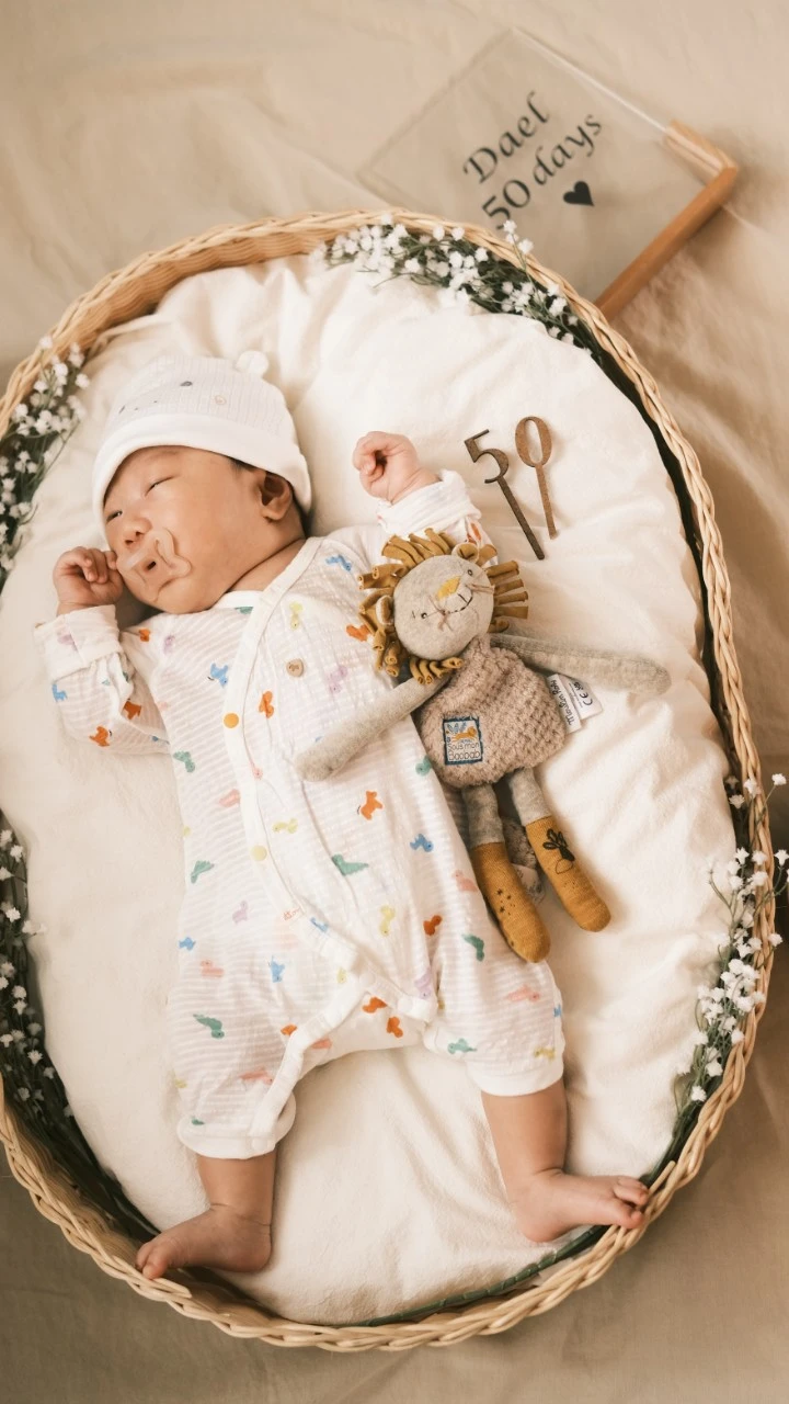 어느 사이 50일 기념사진까지(친할아버지가 사주신 사자인형과)