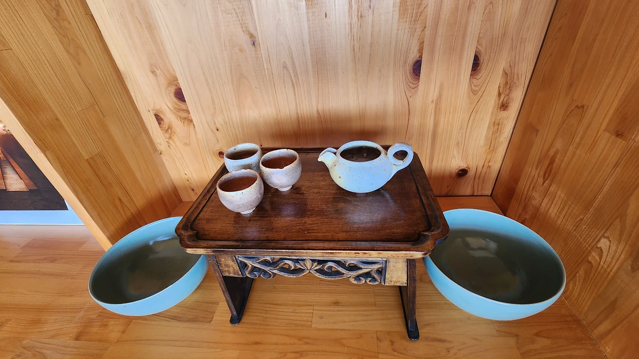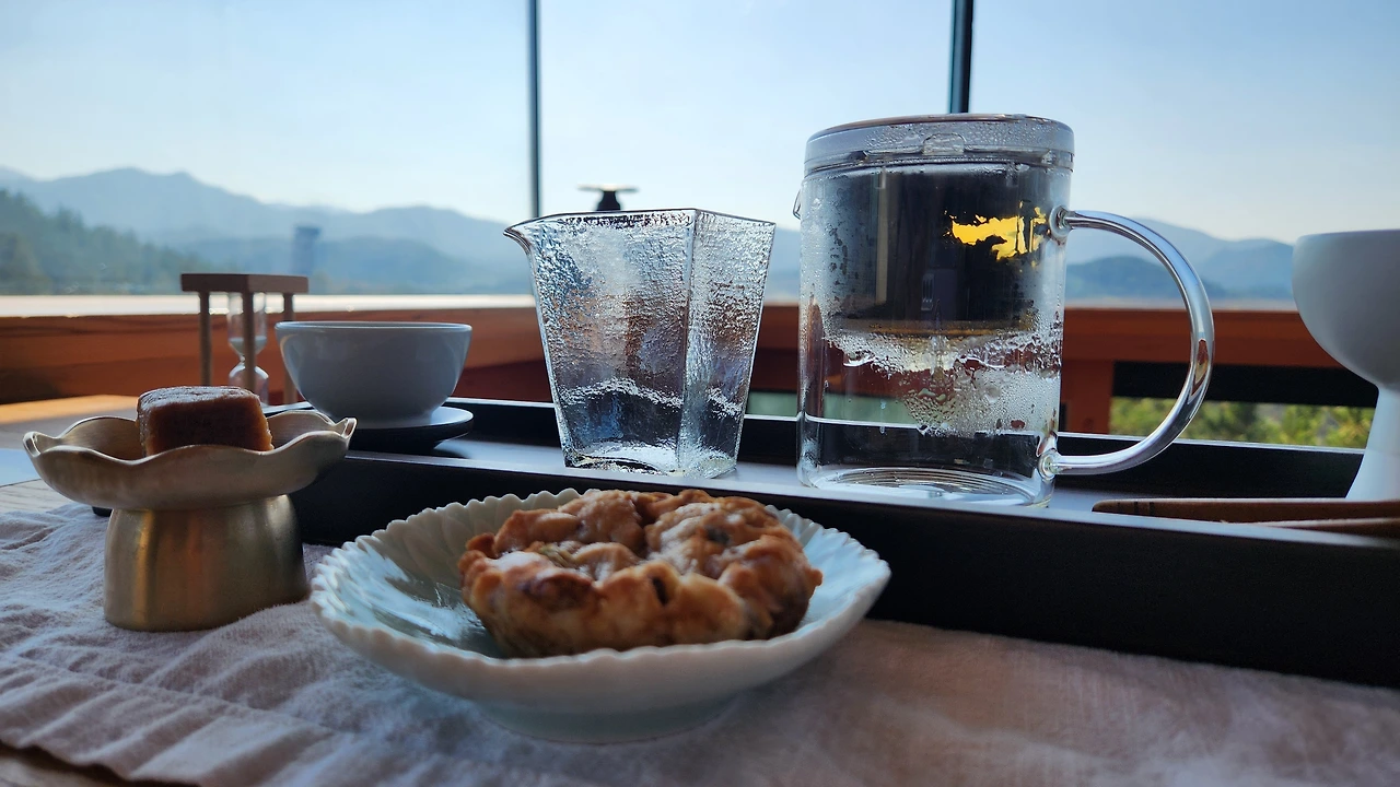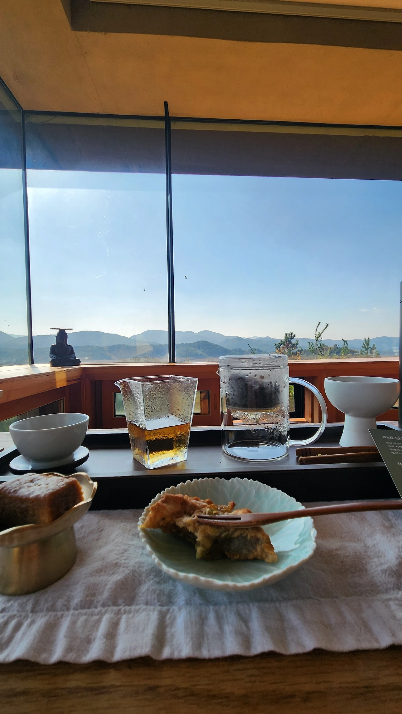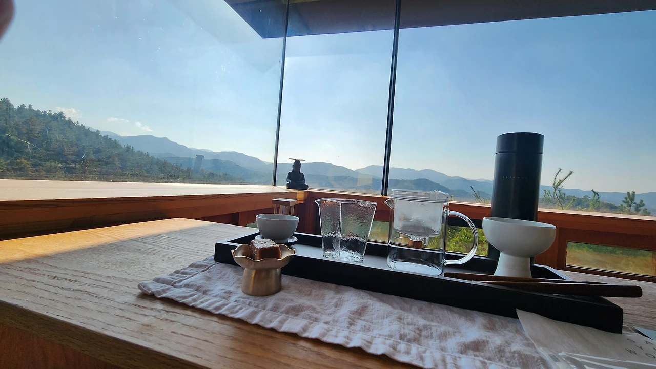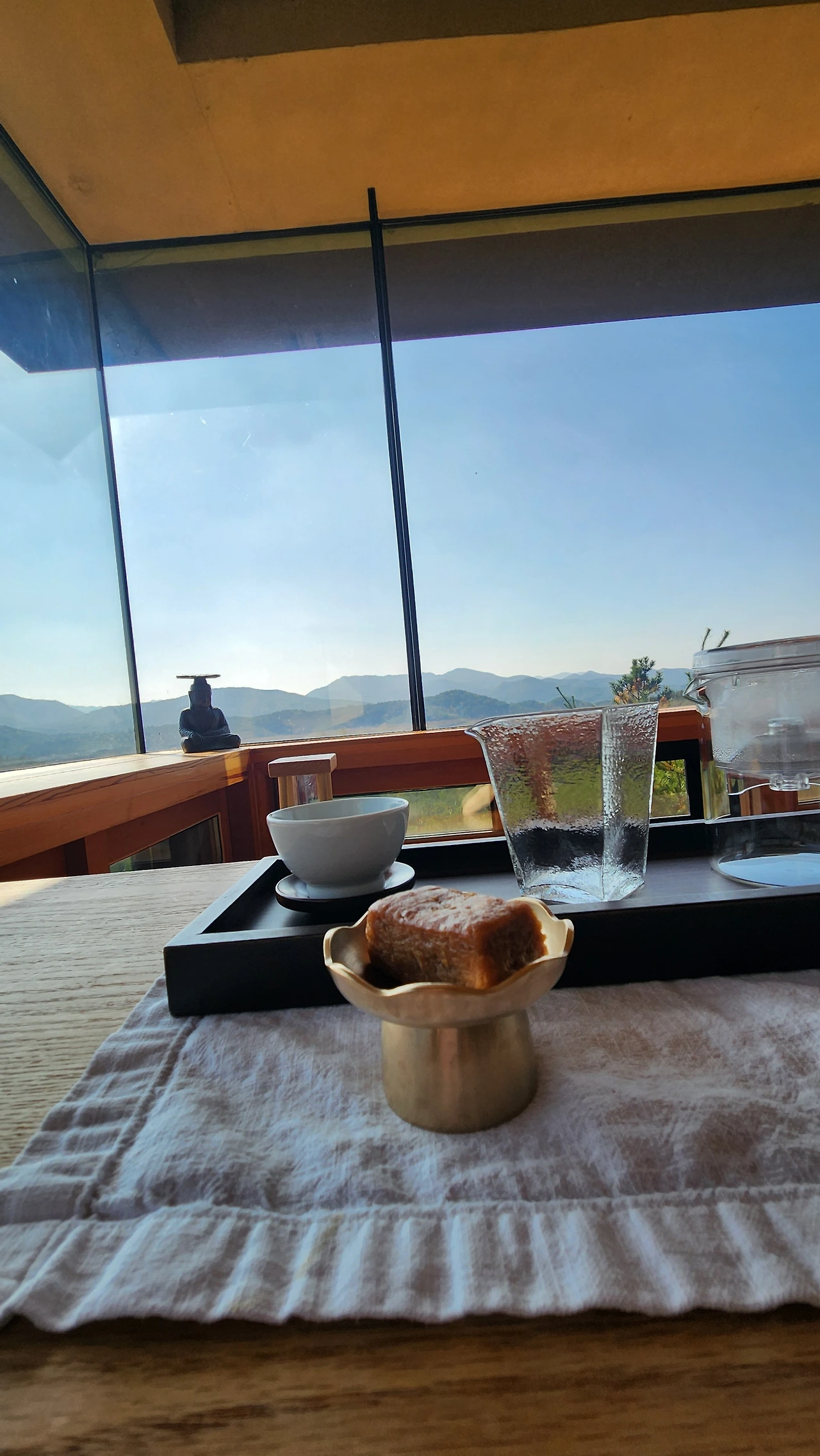 명상과 티타임으로 이른아침 이동의 피로를 풀어보고,