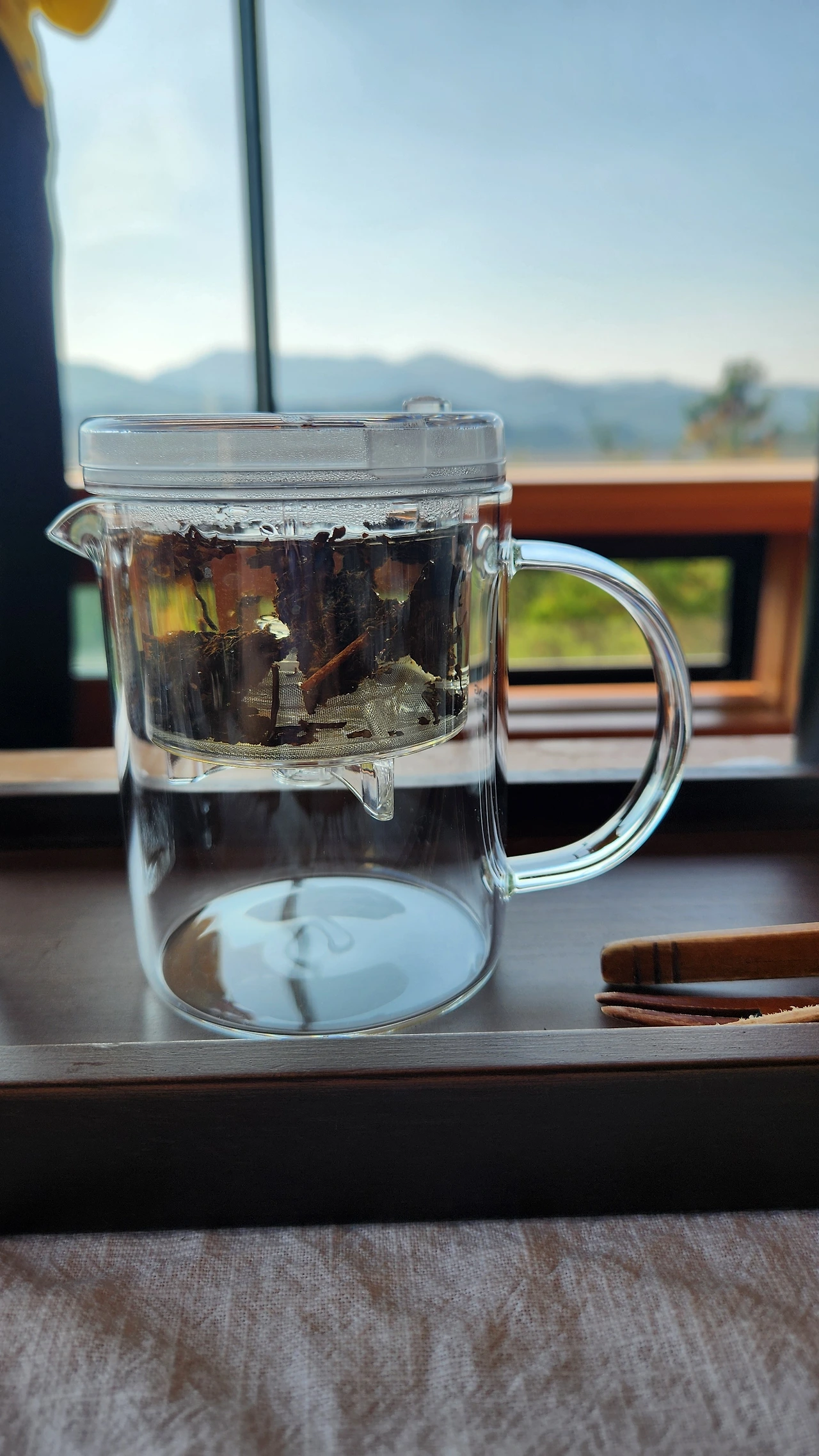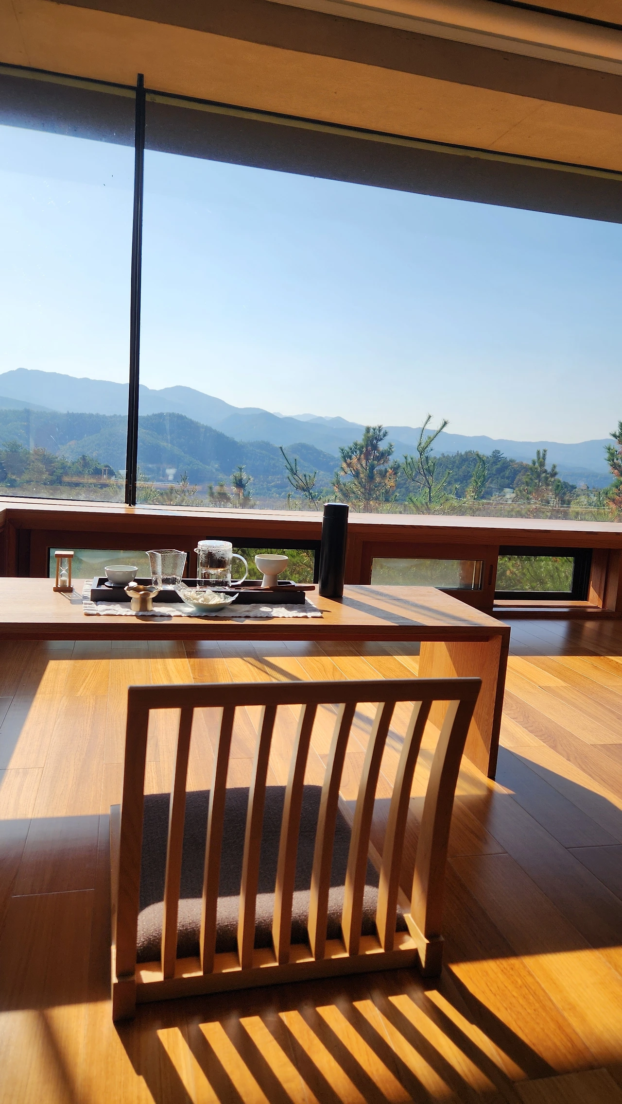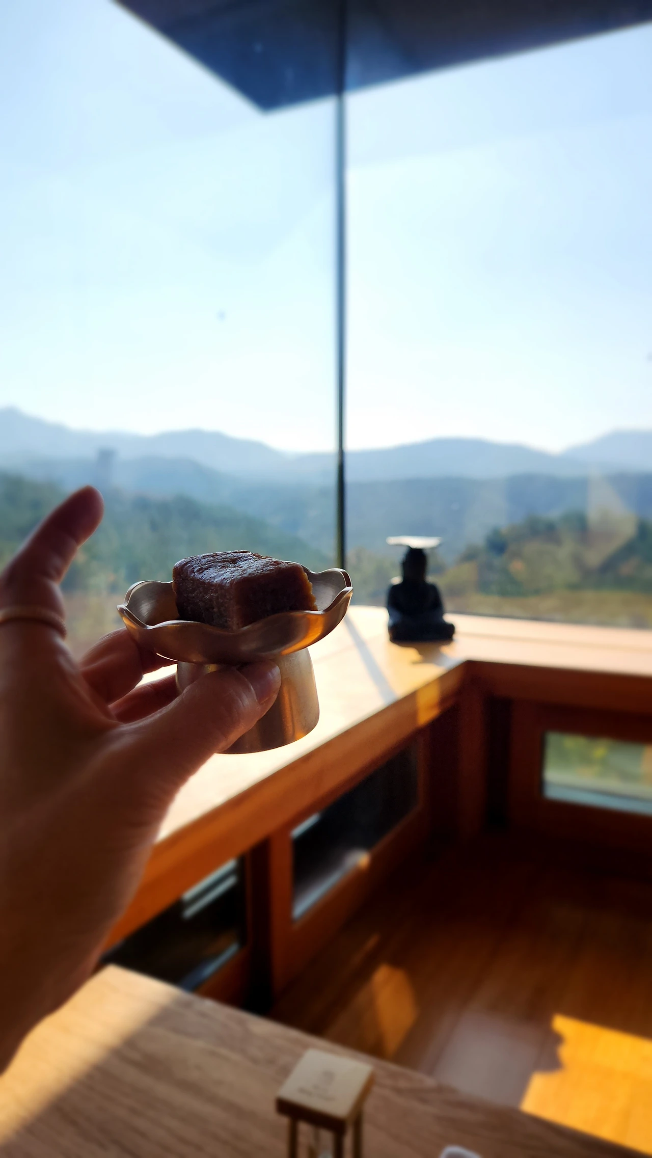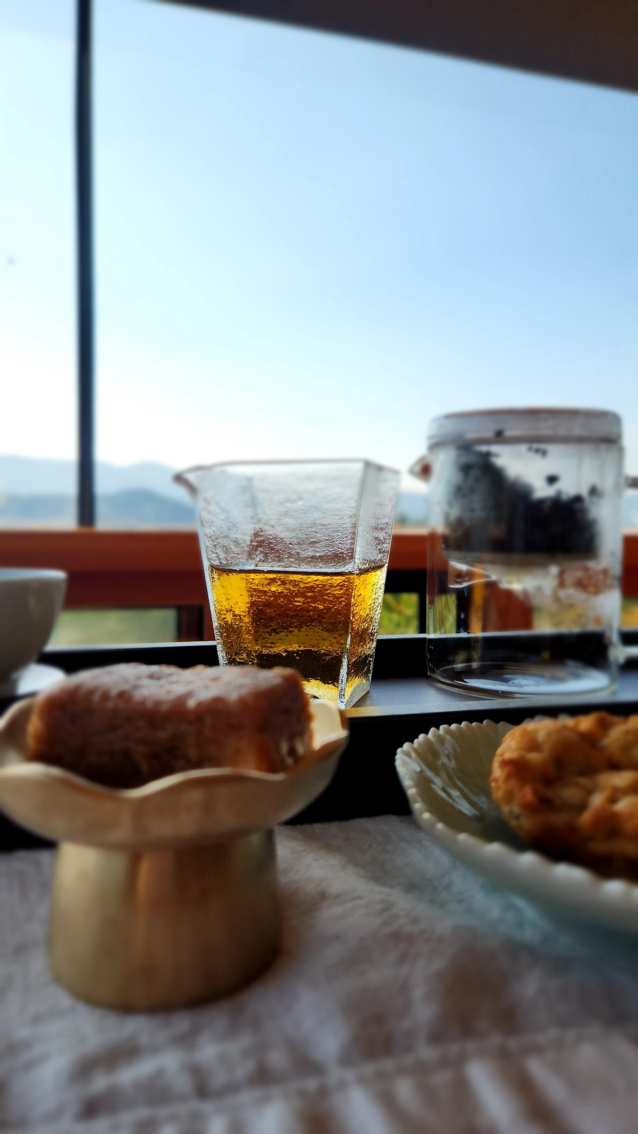 명상과 티타임으로 이른아침 이동의 피로를 풀어보고,