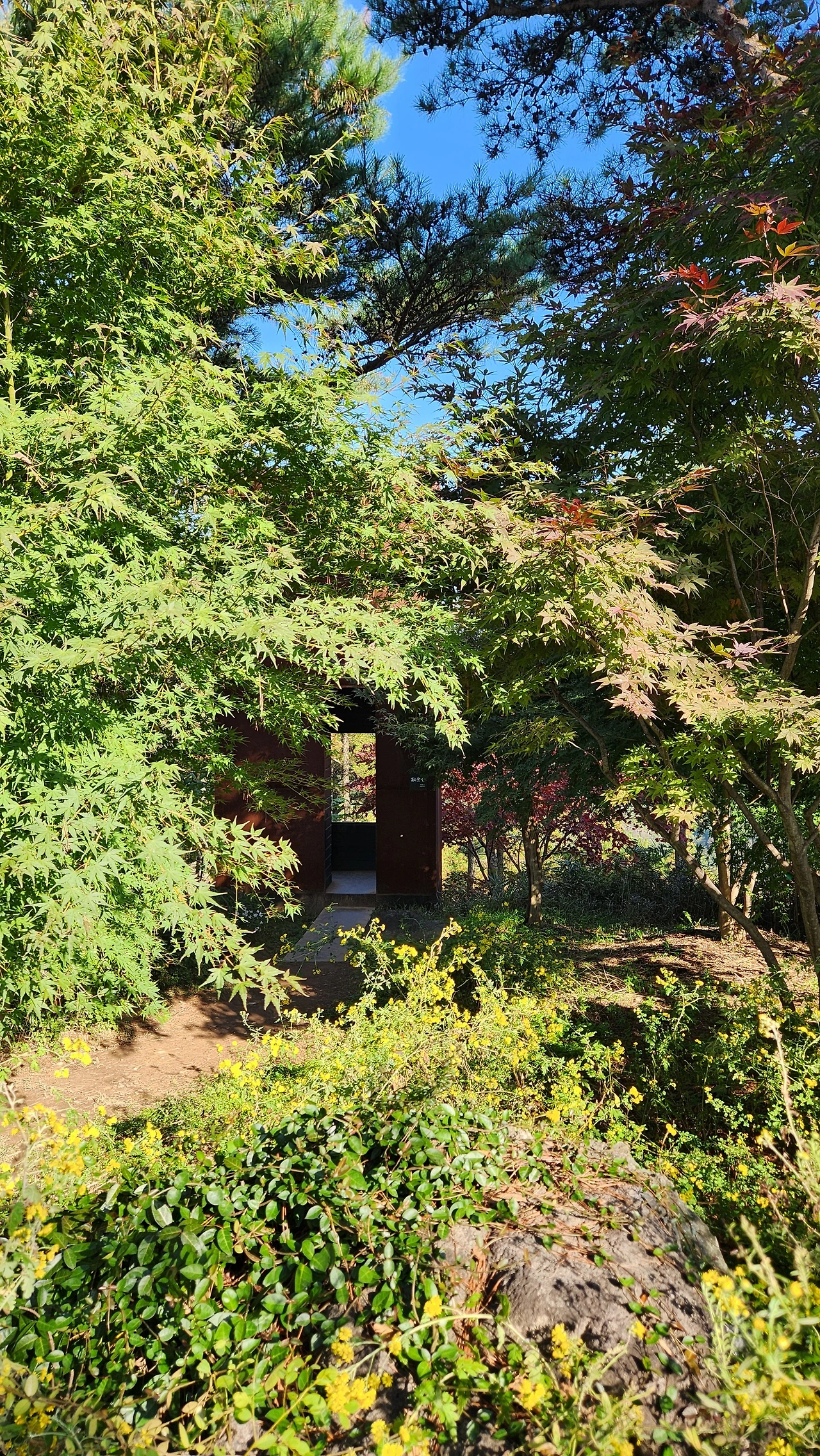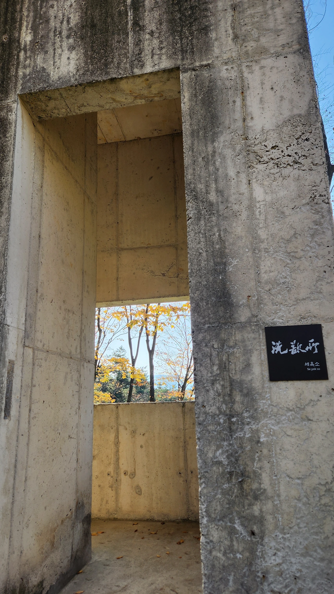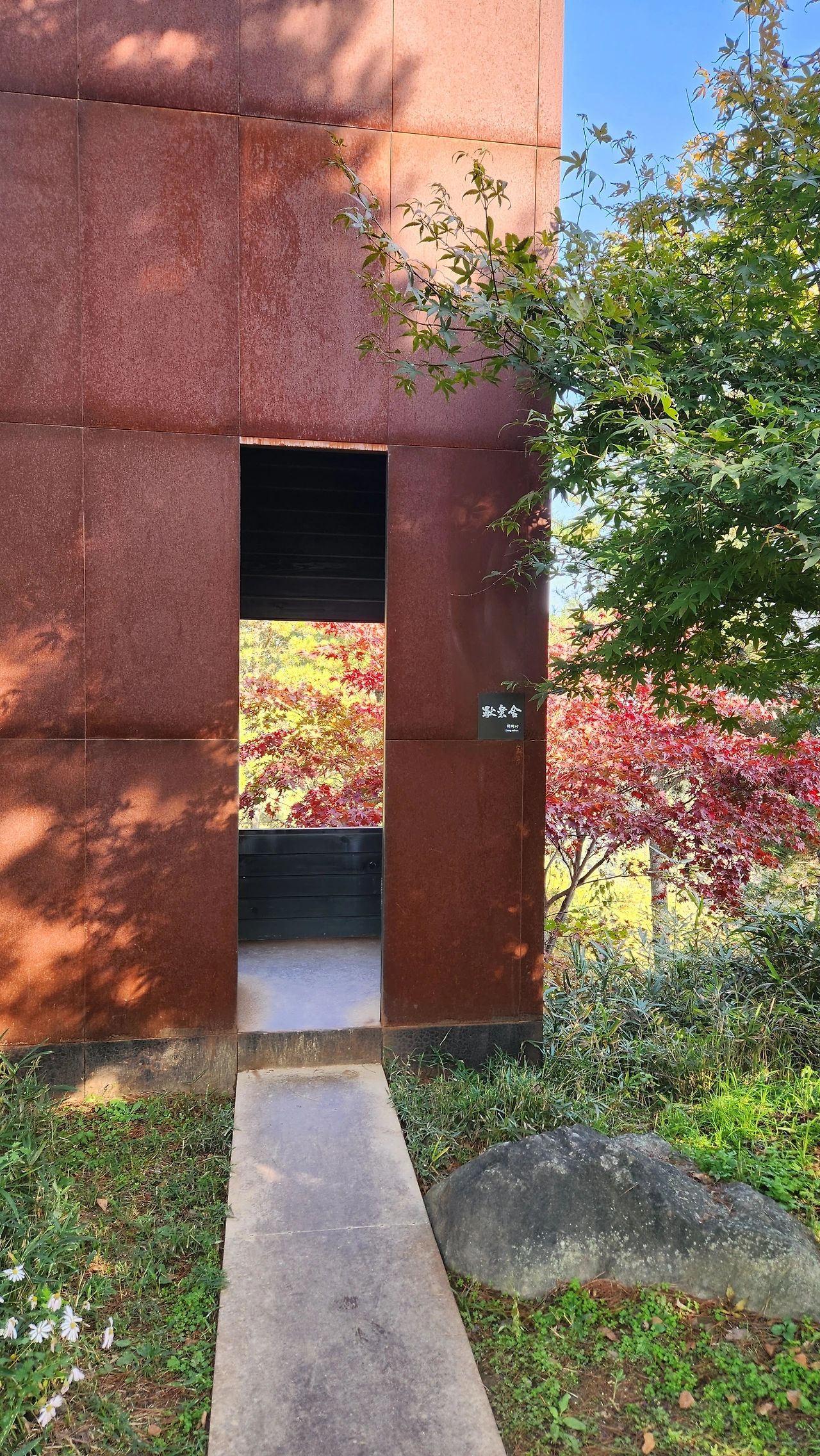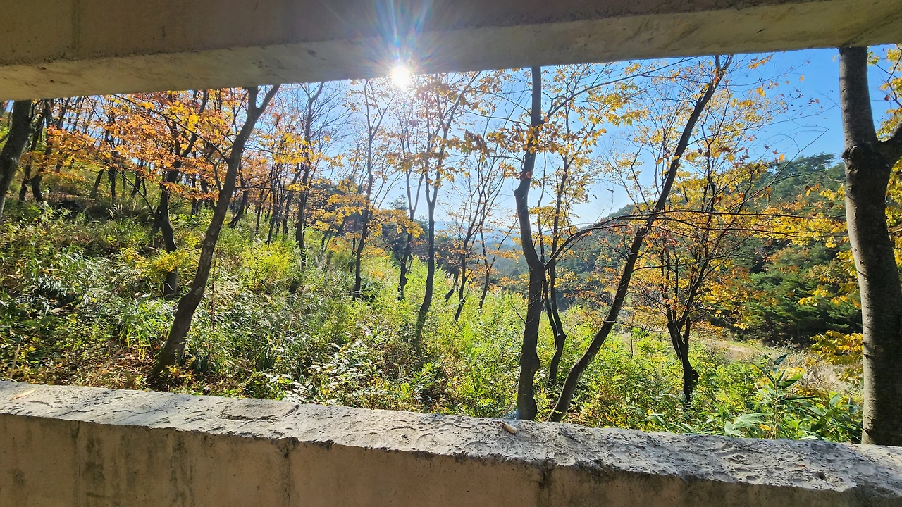 실은 화장실 건물이었지만 그 공간너머의 붉은 단풍이 얼마나 아름답던지..