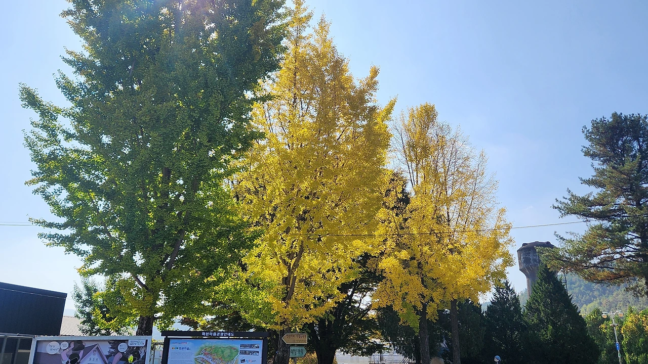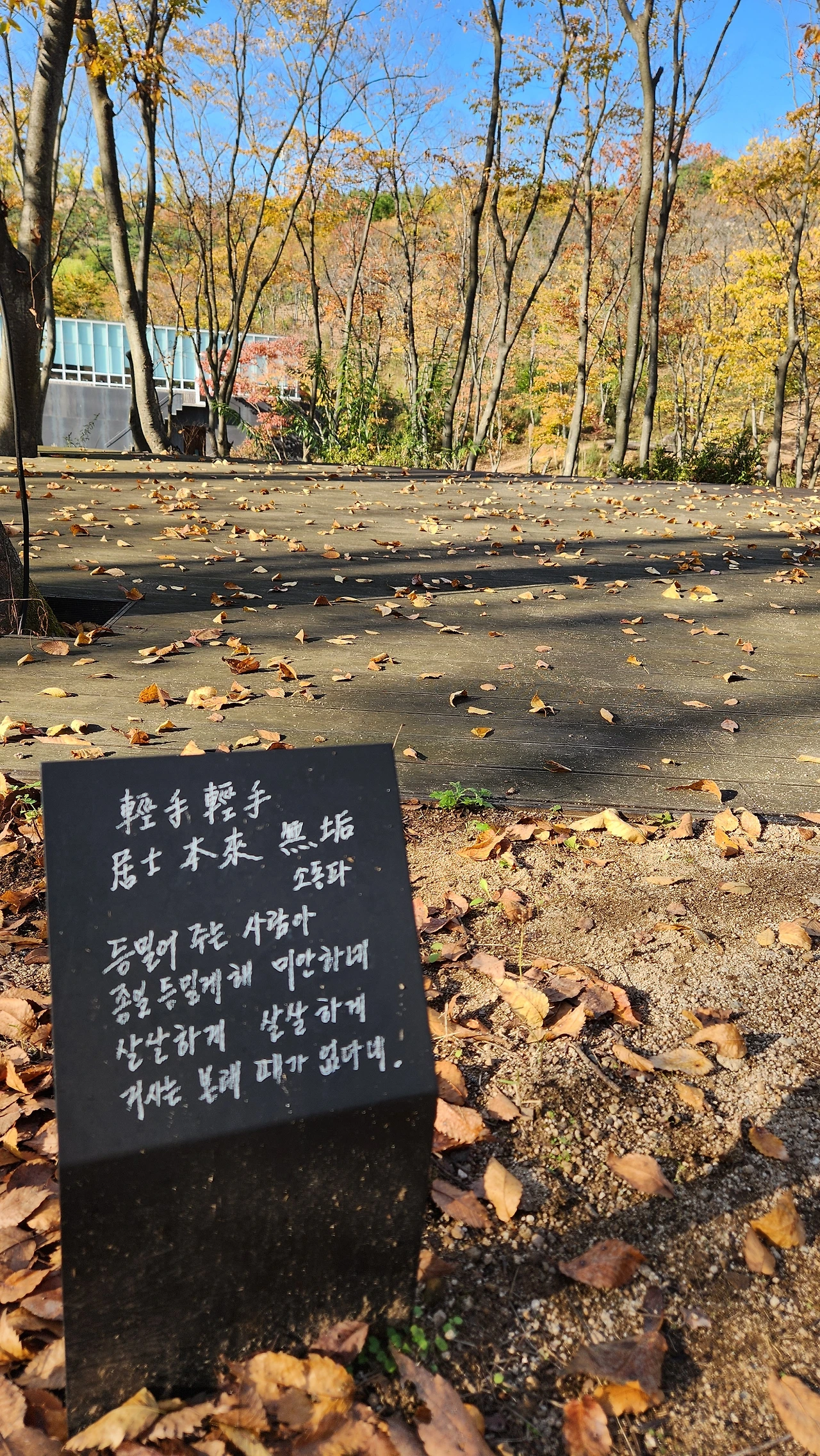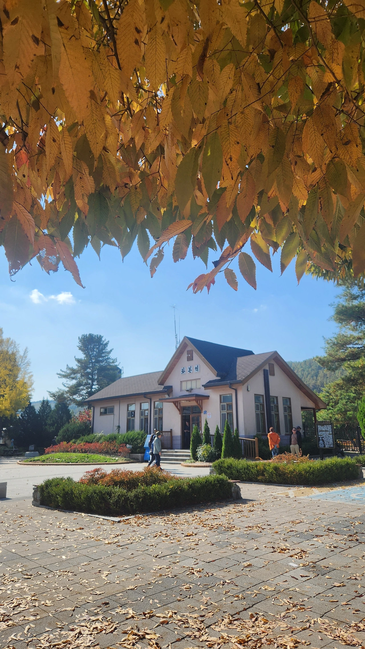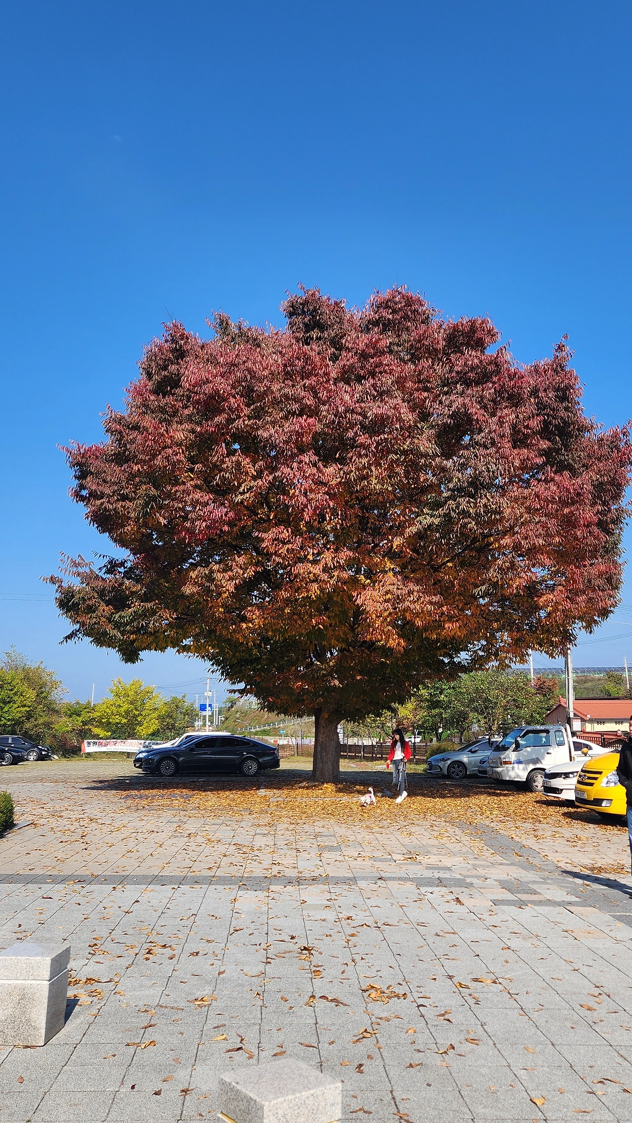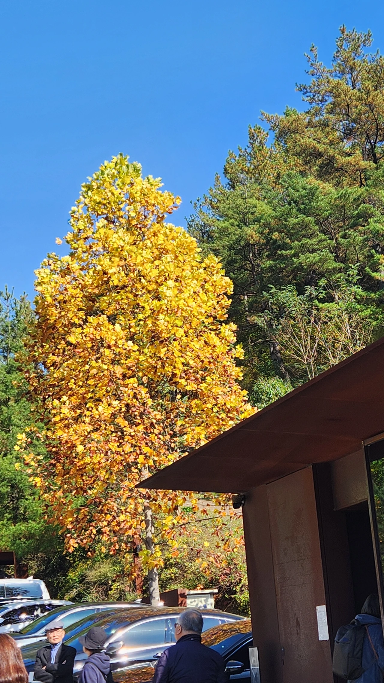 실은 화장실 건물이었지만 그 공간너머의 붉은 단풍이 얼마나 아름답던지..