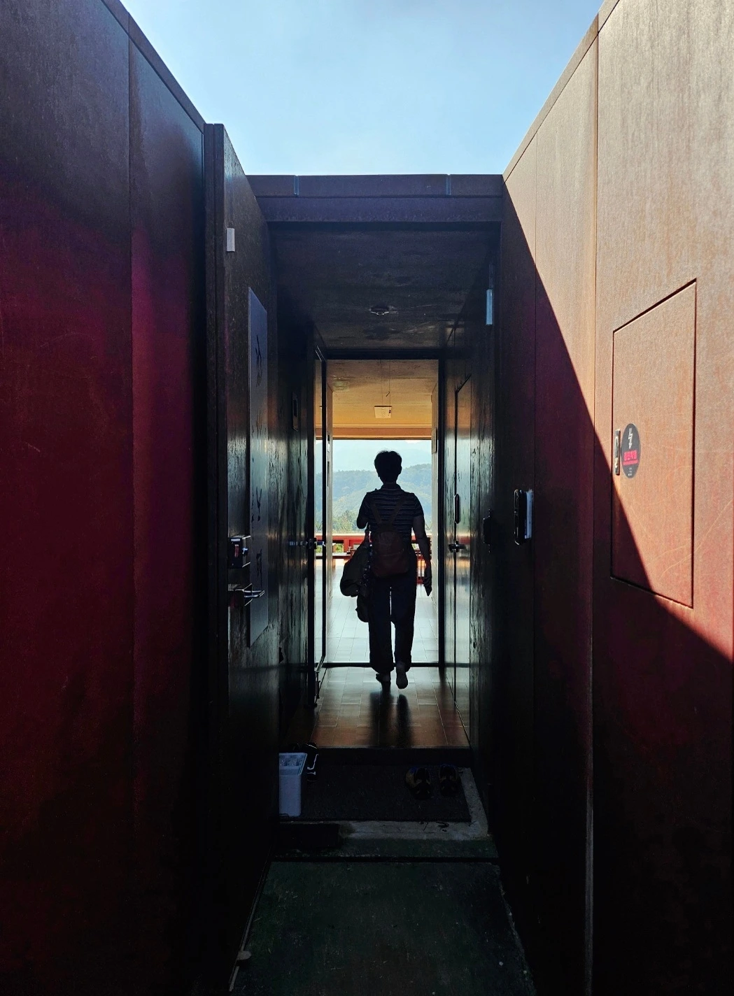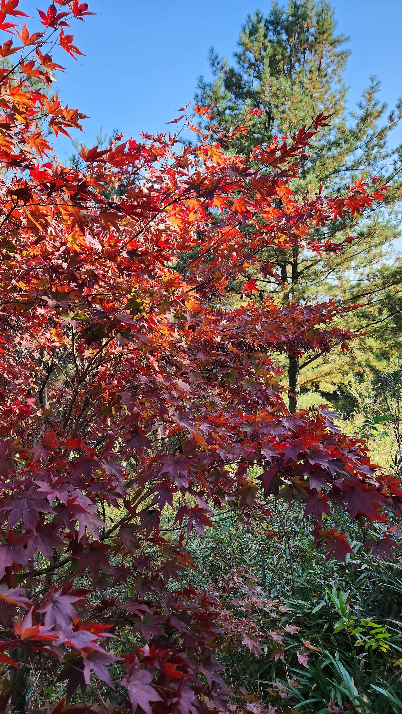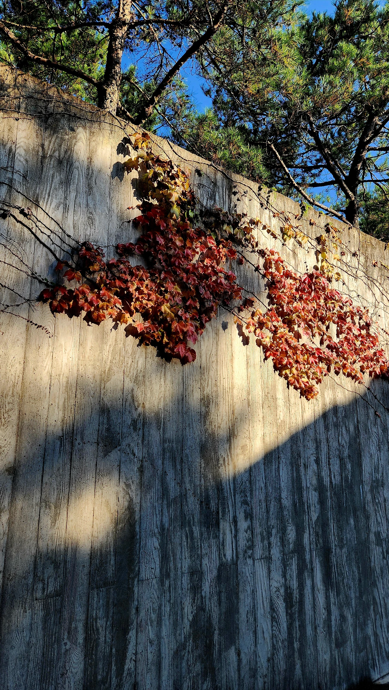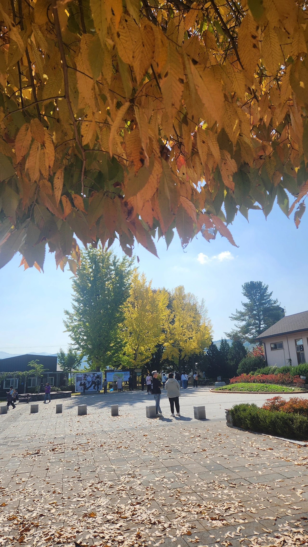 실은 화장실 건물이었지만 그 공간너머의 붉은 단풍이 얼마나 아름답던지..