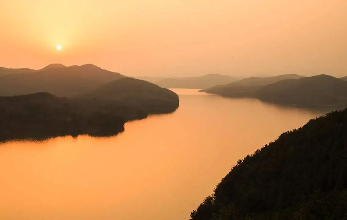 석양을 보러 일부러 진양호숫가로 가서 기다린 보람만큼 멋진 풍경