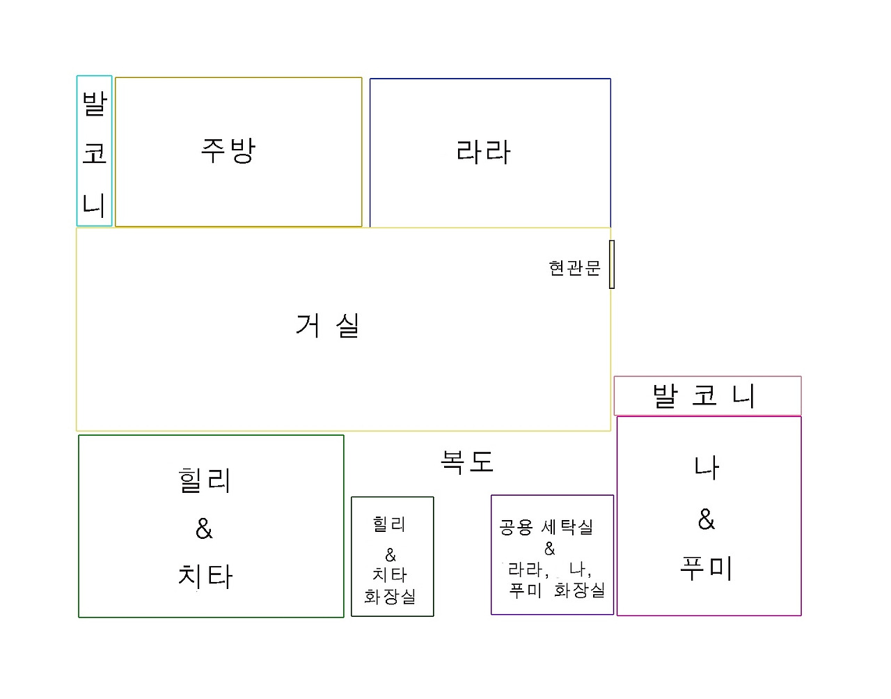 거실 바로 뒤편에 있는 방문에 이름을 읽어봤다. 한 명은 일본 사람으로 추정되는 이름이었고 다른 한 명은 Family name 때문에 남미 쪽일 거라 혼자 결론을 내렸다.