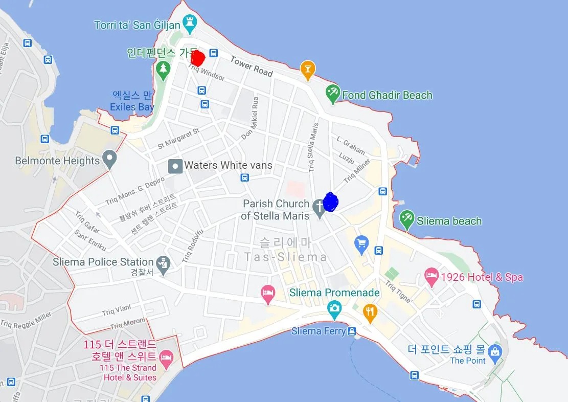 플랫 메이트 두 명도 길이 익숙하지 않은지 약간 헤매는 듯해 보였다. 나중에 알았지만 우리가 갔던 스콧츠 마트는 숙소와 같은 슬리에마(Sliema)라는 지역에 있었다. 하지만 우리 숙소는 슬리에마 끄트머리에 있었고 스콧츠 마트는 슬리에마 중심부와 가까이 있었기 때문에 한참을 걸어가는 것처럼 느낄 수밖에 없었던 거였다.