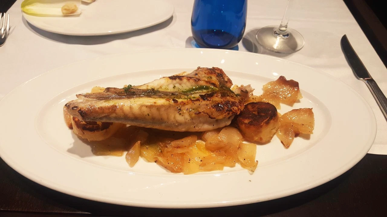 이 날 점심은 사장님 추천 장소 중 한 곳을 선택해서 들어갔다. 1인 자리를 안내받고 난 후 열심히 메뉴판을 정독했다. 생선요리와 화이트 와인 한잔을 주문했다. 메뉴판을 본 즉시 생선의 이름을 파악했어야 했는데 그냥 배고프니까 음식이 나오자마자 열심히 먹은 기억밖에 없다.