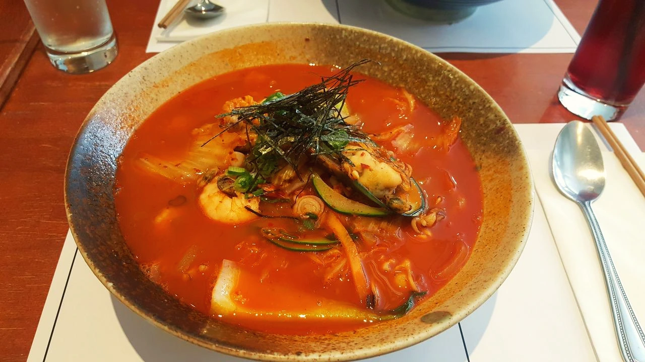 웬만해서는 현지에서만 맛볼 수 있는 메뉴를 고르고 싶었지만, 몰타에 있을 때부터 인내력을 잃었던 터라 맵고 빨간 음식이 끌렸다. 그런데 지도 맵을 통해서 찾아봐도 자료에 나와있는 'Kyoto'라고 적힌 간판은 보이지 않았다. 계속 주변에서 서성이고 있으니 근처 가게 사장님이 가게 이름이 바뀌었다고 알려주셨다. ('닌니쿠'로 상호명 변경됨) 우리는 감사하다는 인사를 전하고 식당 안으로 들어갔다. 형식적으로 메뉴판을 빠르게 훑어본 다음 짬뽕을 시켰다. 짬뽕 안에 있던 면은 짬뽕면이 아닌 라면이었다. 그래도 빨간 국물에 채소가 다양하게 들어가 있어서 굉장히 만족스러웠다.