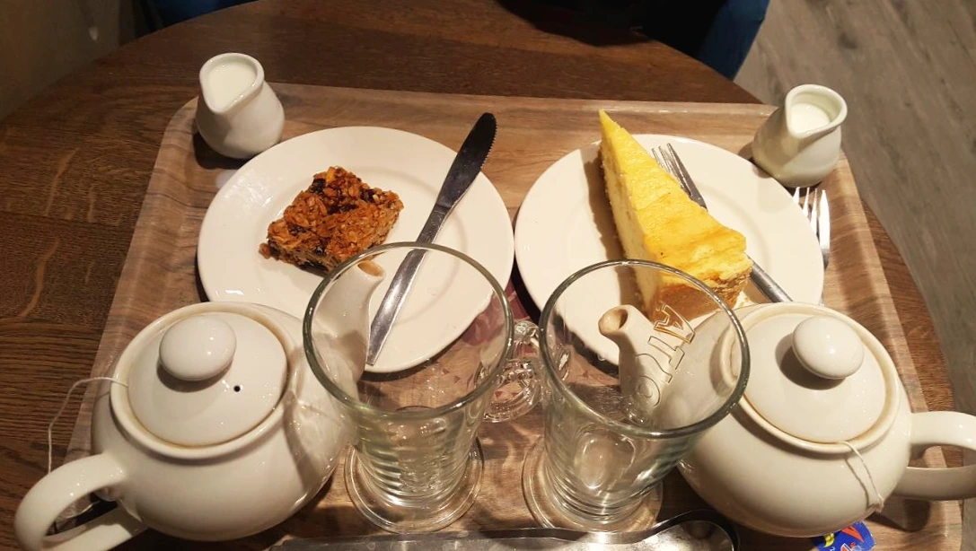 그건 바로 애프터눈 티를 한 번도 즐겨보지 못했다는 거였다. 포털 사이트나 여행정보 앱 등에서 런던 애프터눈 티를 파는 곳을 찾아봤지만 마땅한 곳이 나오지 않았다. 그래서 쩡A와 겨우 찾은 프랜차이즈 카페에 들어가 홍차를 주문했다. 스콘이 있냐고 물었지만 매진됐다고 해서 치즈 조각 케이크와 견과류가 잔뜩 들어간 파이를 시켰다. 티팟에 홍차가 우려 지고 있었고 따로 준 유리잔에 따라 마셨다. 많이 어설펐지만 이렇게라도 티 타임을 즐길 수 있어서 다행이라 생각했다.