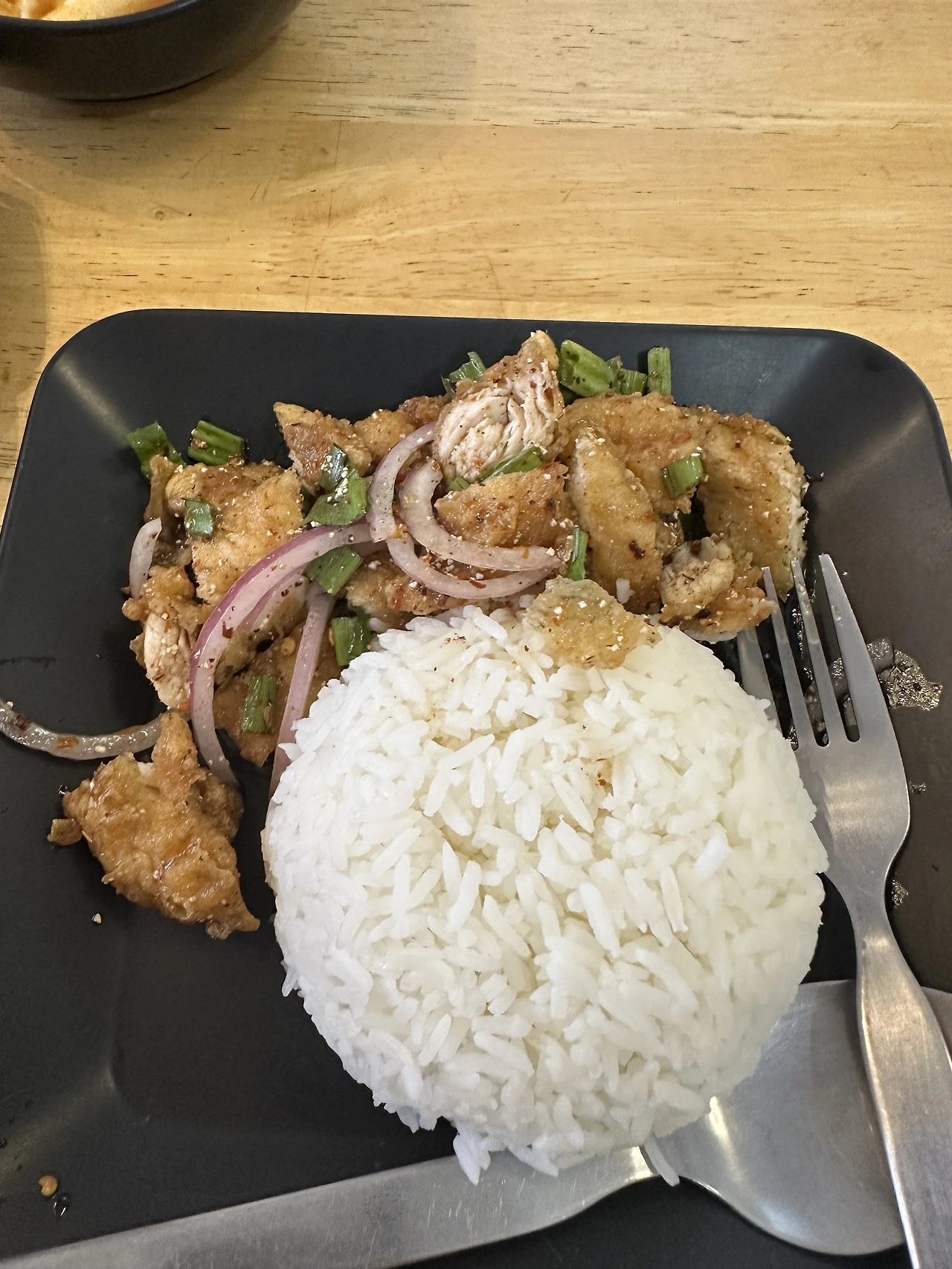 모든 걱정은 치킨을 한 입 베어 문 순간 눈 녹듯 사라졌다. 닭껍질은 놀라울 만큼 바삭했고, 양념은 아낌없이 고루 발라져 있어 하나하나 정성스럽게 만든 느낌이 났다. 마치 교촌 레드 맛 같기도 했다. 그동안 태국에서 먹었던 어떤 치킨보다도 ‘한국의 맛’에 가까웠다. 입 안에서 바삭거리는 소리와 함께, 괜한 감동이 밀려왔다.