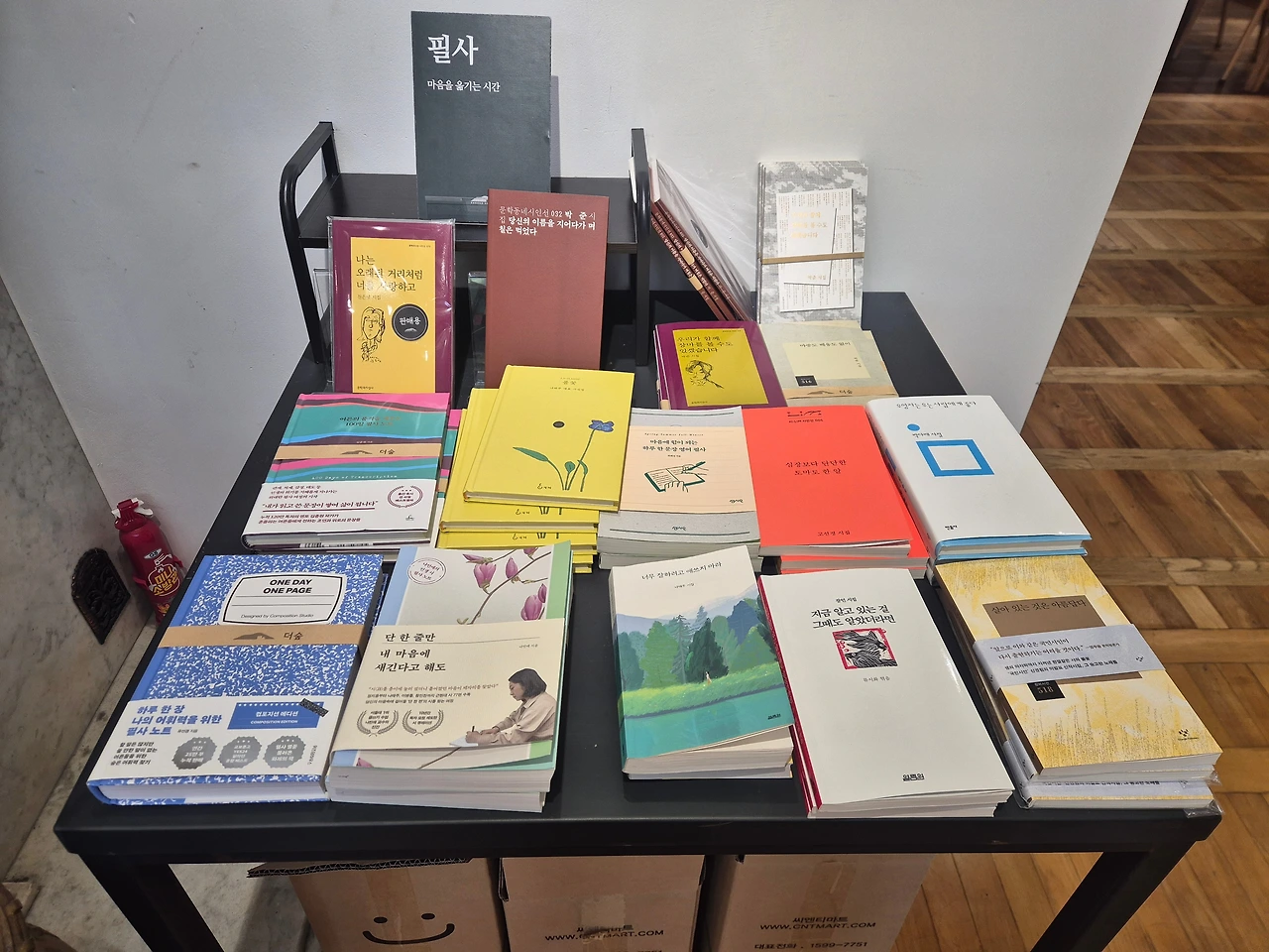 요즘 많은 사람들이 관심을 가지고 있는 필사 코너도 있었다. 필사하기 쉽게 두껍지 않은 책들을 선정해서 놓은 것이 센스있다고 생각되었다. 직접 책에다 필사를 할 수 있는 책도 있었는데, 기회가 된다면 구입해 보고 싶기도 했다.