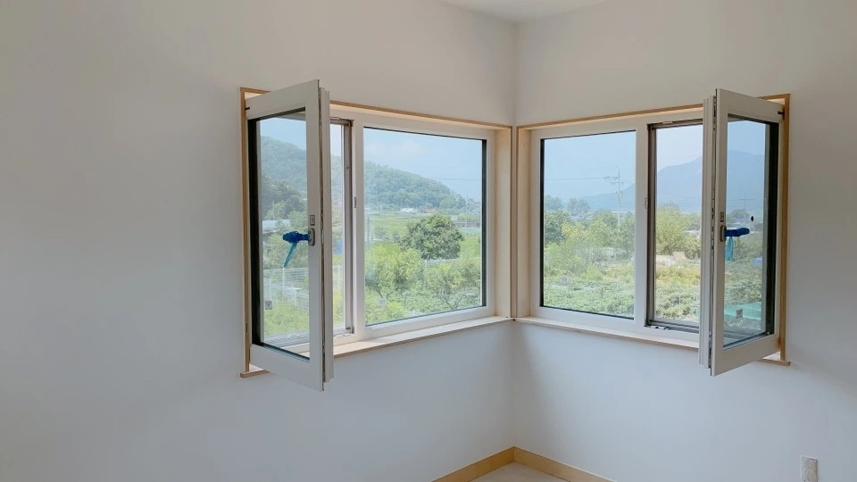 아빠. 이 창으로 보면 앞에 밭이랑 저 앞에 길까지 다 보이게 될꺼야. 엄청 시원한 창일껄?