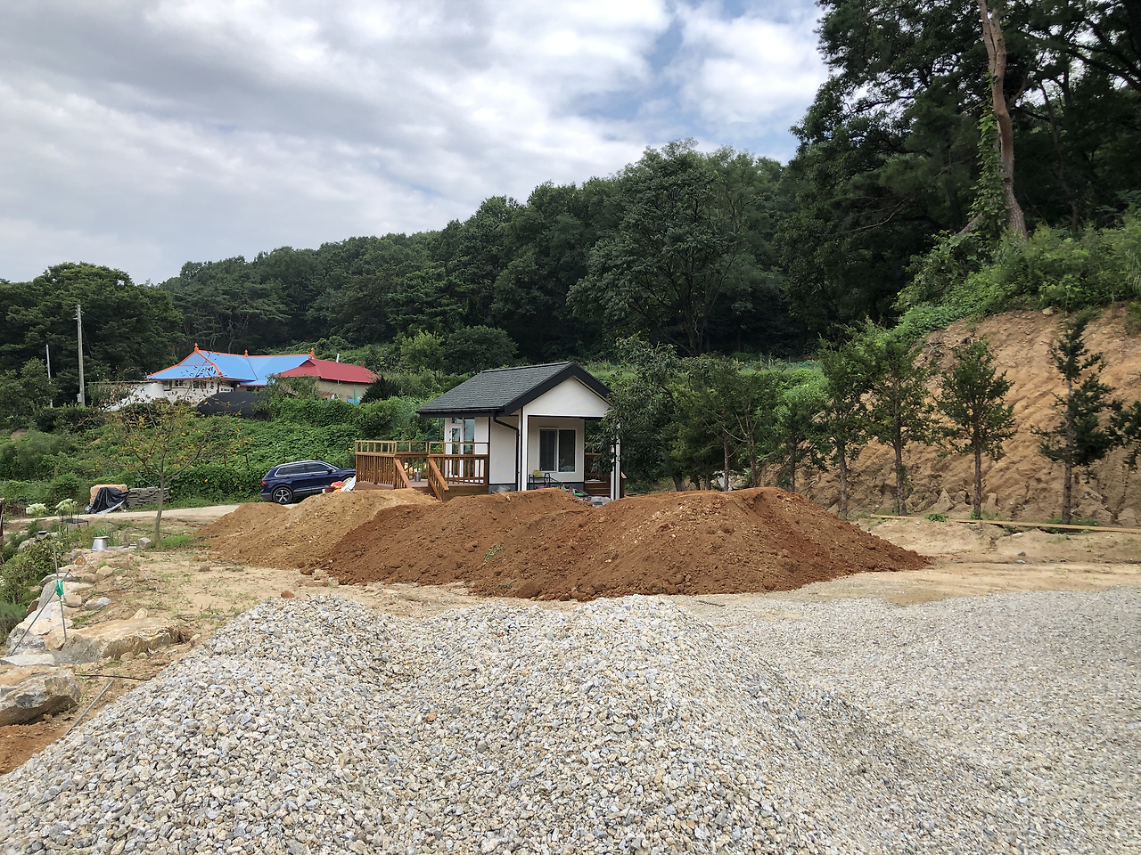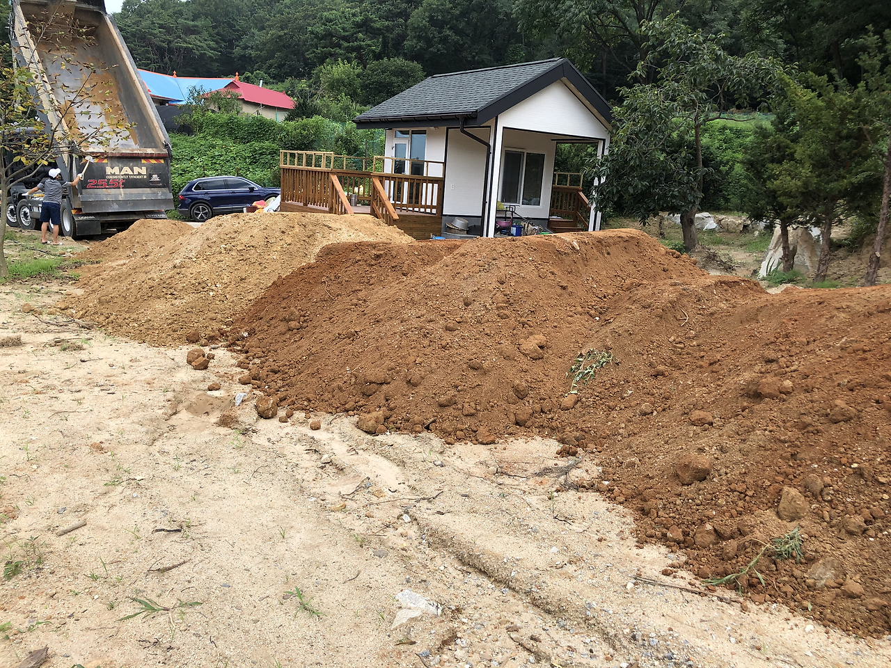 비오면 또 기약이 없으니 오늘 아침 일찍이라도 가져다 주신 흙더미. 저걸 펴긴 해야하는데 비그치고 땅마를 때까지 또 기다려야해서 기약도 없이 다음에 연락주시기로 하고 통화를 끝냈다.