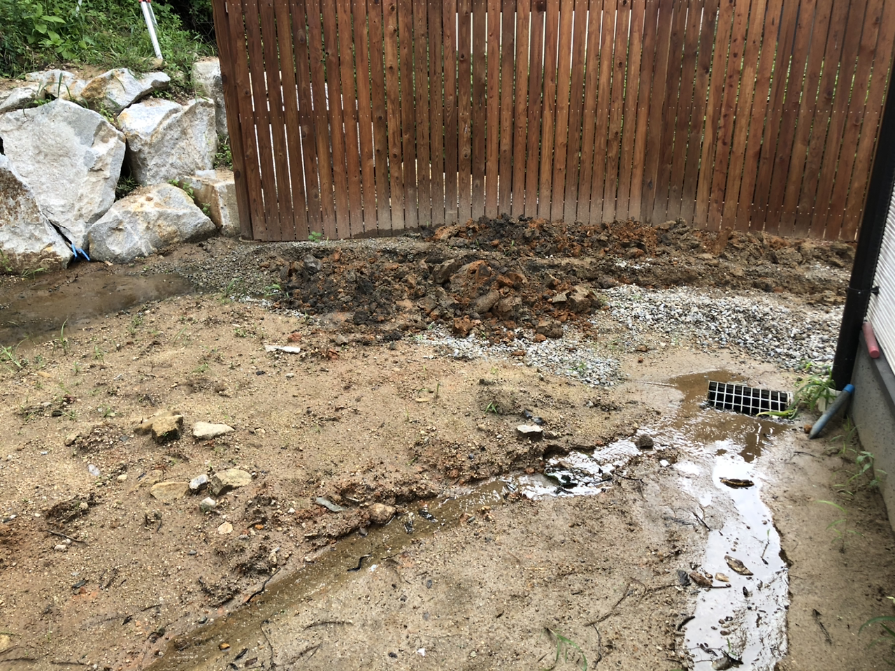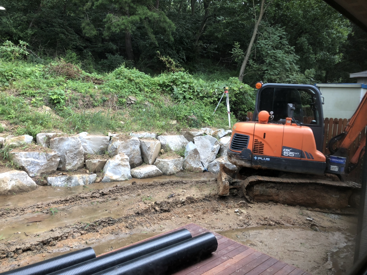 그래도 비 맞으면서도 관은 다 묻어두시고, 내일부터 진행할 마당 정비 공사에 대해 이것저것 아이디어를 보태주시고, 낭비다 싶은 스펙은 버리게 해 주시고 철수하셨어요. 감사합니다!