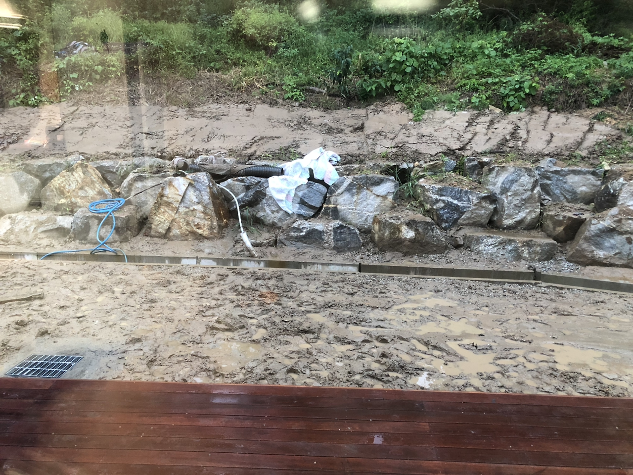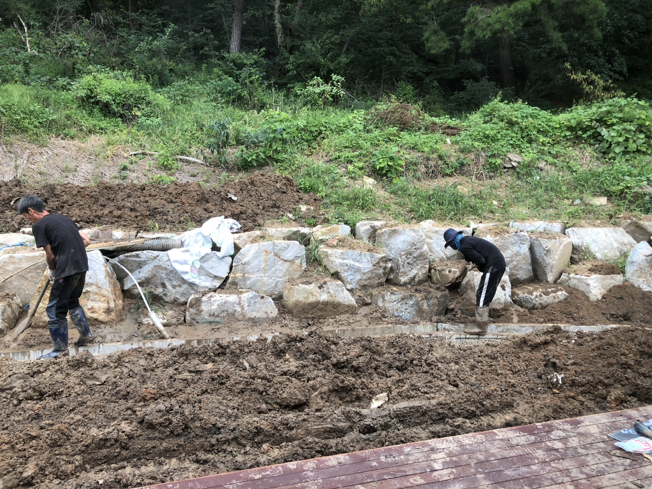 그치지 않는 비에 산에서는 끝없이 물이 내려오고, 땅은 진창이 되어 기계도 사람도 들어가서 뭘 해볼 만한 상황이 안되고, 또 비는 오는 악순환을 두 달 넘게 하면서 속을 끓이고 있었지요. (홧병)