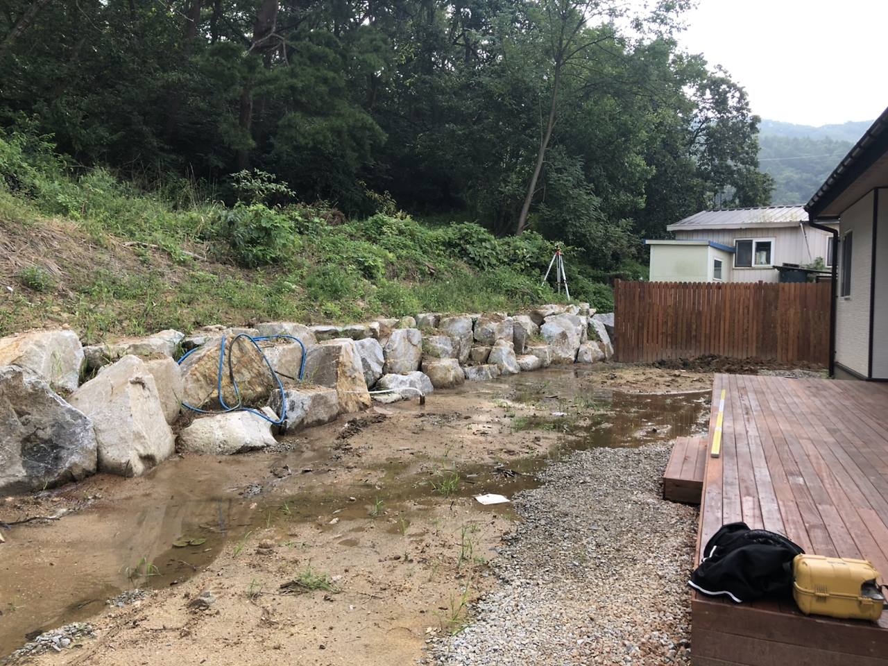 흐르는 물을 보신 사장님께서 관 앞에 유공관을 붙여 묻고, 데크 계단 옆엔 맨홀을 하나 더 만들어주셨어요. 이정도면 물들이 꺼져줘야 할 텐데. 그 정도 눈치는 있겠죠?