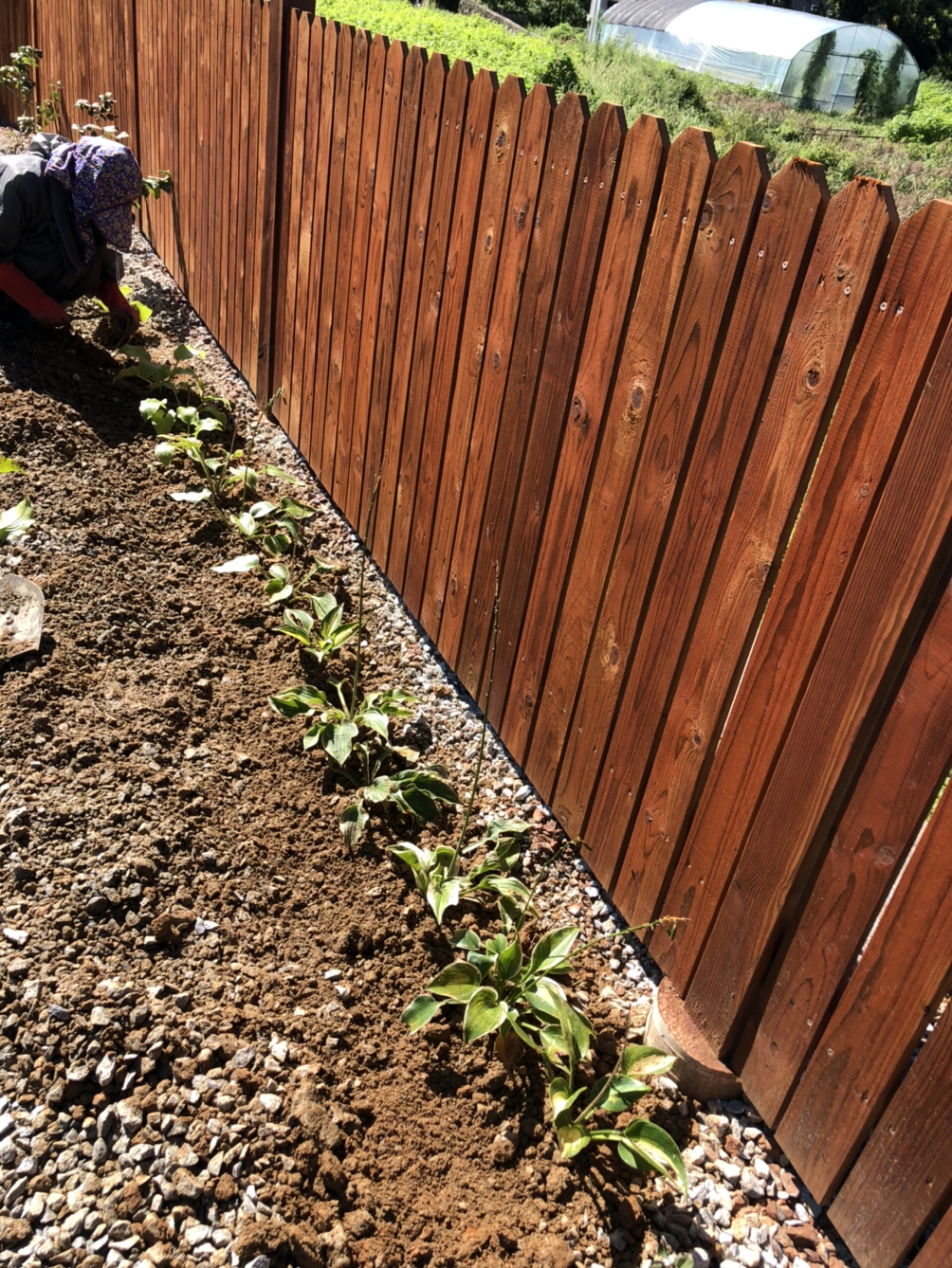 옥잠화를 그늘 잘 드는 곳에 쭉 심어요.