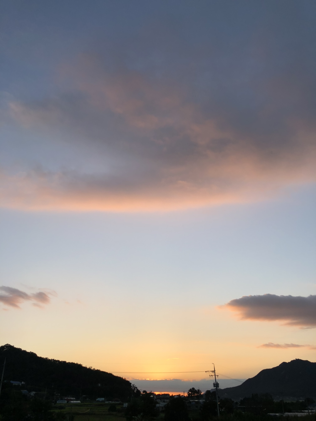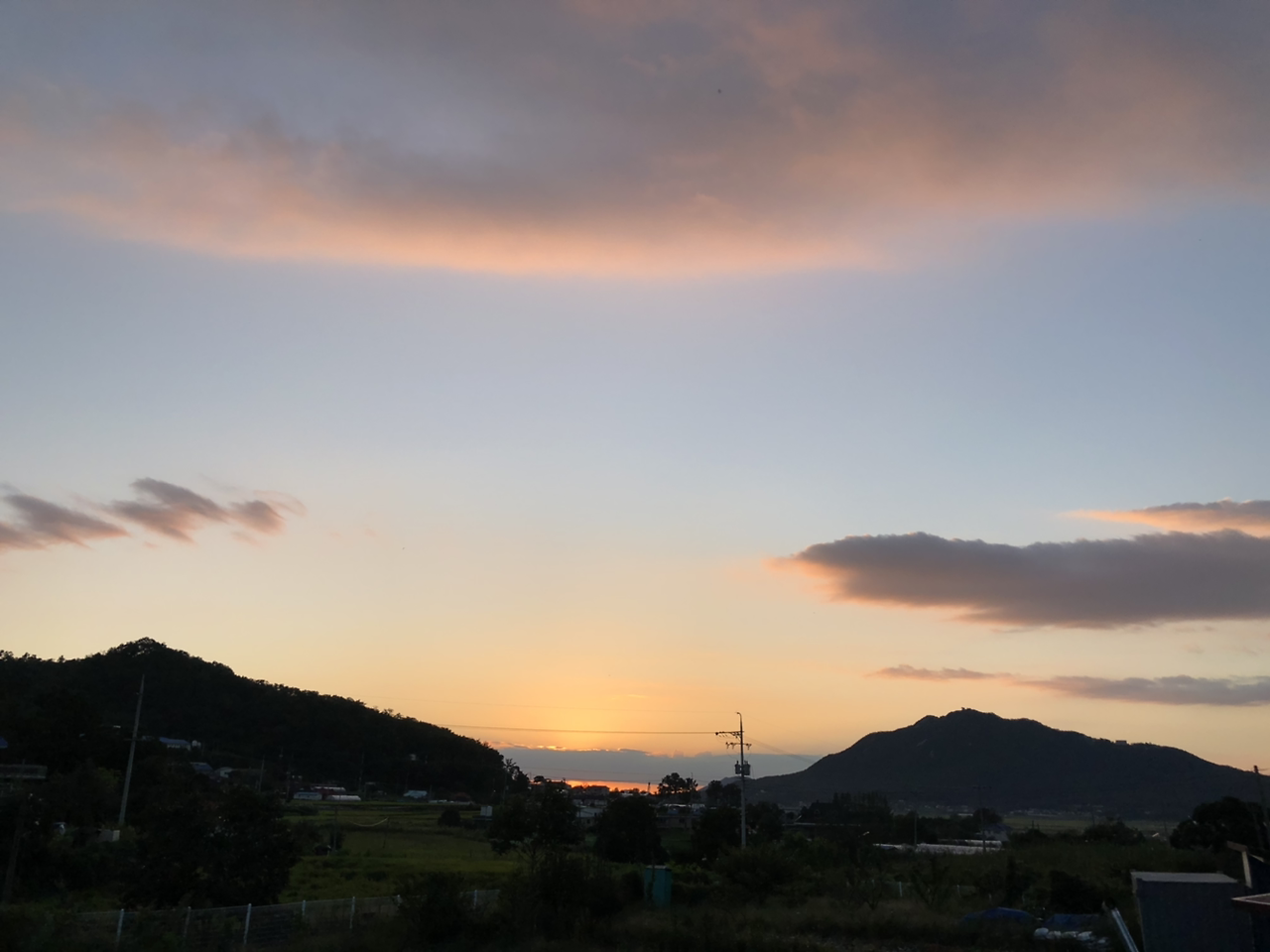 하필, 해질 때 서쪽으로 구름이 몰려와서 (쳇) 오늘의 노을은 짧고 아쉬웠지요. 그래도 딸기 솜사탕 같은 구름이 예쁩니다.