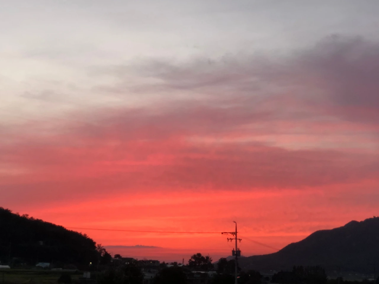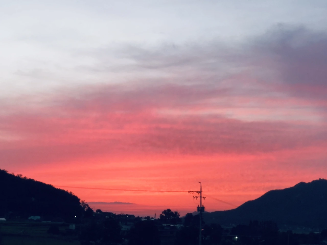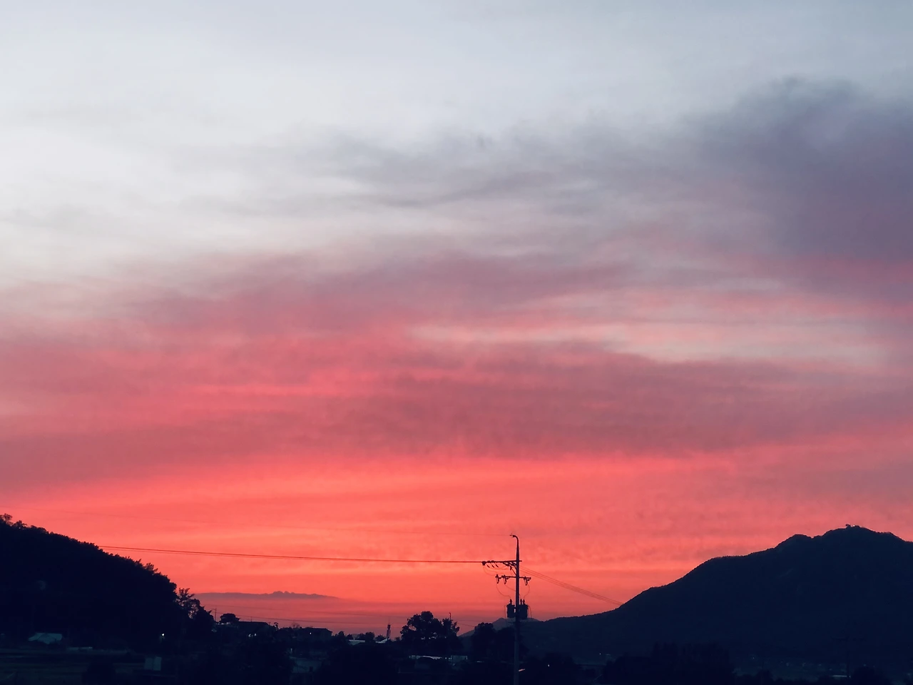 맑은 날 해가 지면 하늘 전체가 무지개빛이 됩니다. 붉은 색에서 짙은 보라색까지 보이는데 핸드폰 카메라로는 잘 나오지 않아서 항상 아쉬워요. 요 며칠 노을이 늘 다르게 예뻐서 사진을 매일 찍었는데요. 생각해보니 이렇게 예쁜 노을이 지는 계절도 곧 끝나네요.