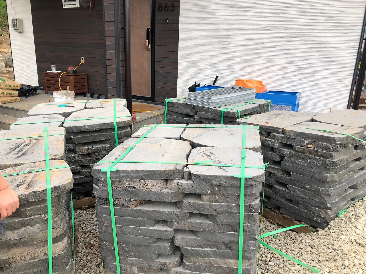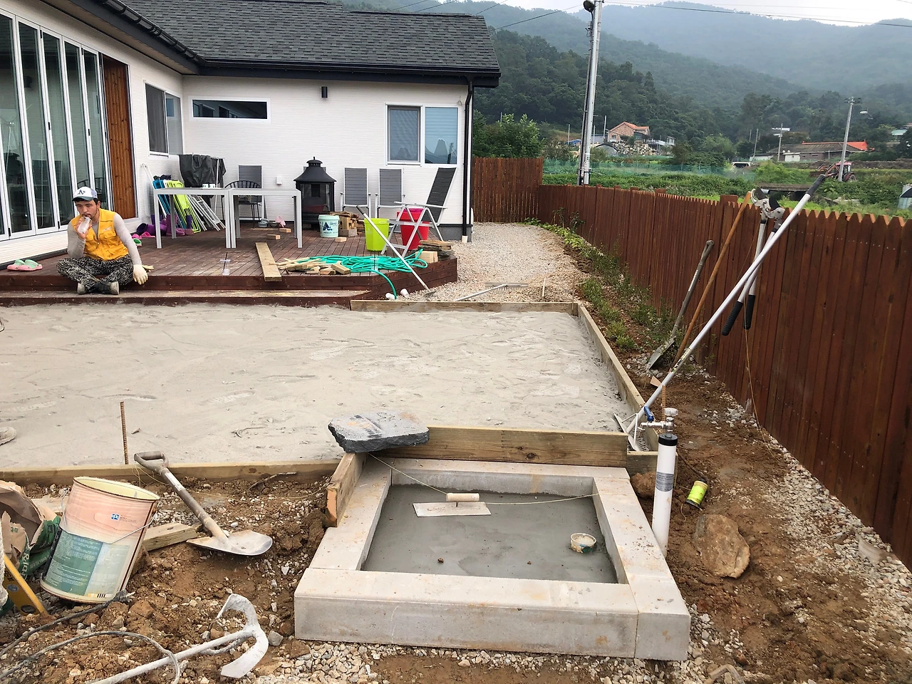 그리고, 앞마당 데크옆엔 디딤석으로 마당을 만들었어요. 엄마랑 이모는 물을 마음대로 쓸 수 있어서 너무 좋다며 좋아하긴 했는데, 사실 맘에 썩 안듭니다. 완벽한 집을 짓고 났더니 사람이 까탈스러워지네요.(마감이 영.... ㅜㅜ) 그래도 하루에 할 일이 아닌 것을 억지로 해주고 가신 그 맘을 알아서 잘 수습해보려고 합니다. 요 며칠 볼 때마다 속상하긴 한데... 언젠가 이것도 해결은 되겠지요. 돌 위에 얹어져버린 저 시멘트를 대체 어떻게해야 빨리 없애버릴 수 있을까요?