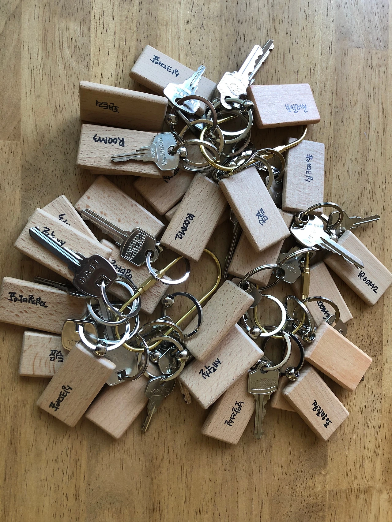 그리고, 드디어 열쇠들을 정리해버렸습니다. 이름을 잘 써두고, 한종류씩 모아서 꾸러미를 만들어서 서랍에 넣어놨어요. 당장 쓸 일은 없어도 세 뭉치나 되니까 잃어버릴 염려는 없을 듯해서 안심되고 좋네요.