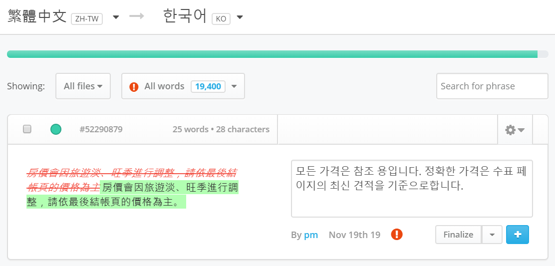 한국어 앱을 론칭할 때, 로컬라이징팀과 함께 번역 내용을 검수하는 업무를 한 적 있다. 번역 작업은 외주를 통해 완료한 상태였다. 단순한 번역은 외주를 줄 수 있으나, 앱이 어떻게 작용되고 이에 따라 번역이 잘 되었는지 감수하는 단계가 더 필요했다.